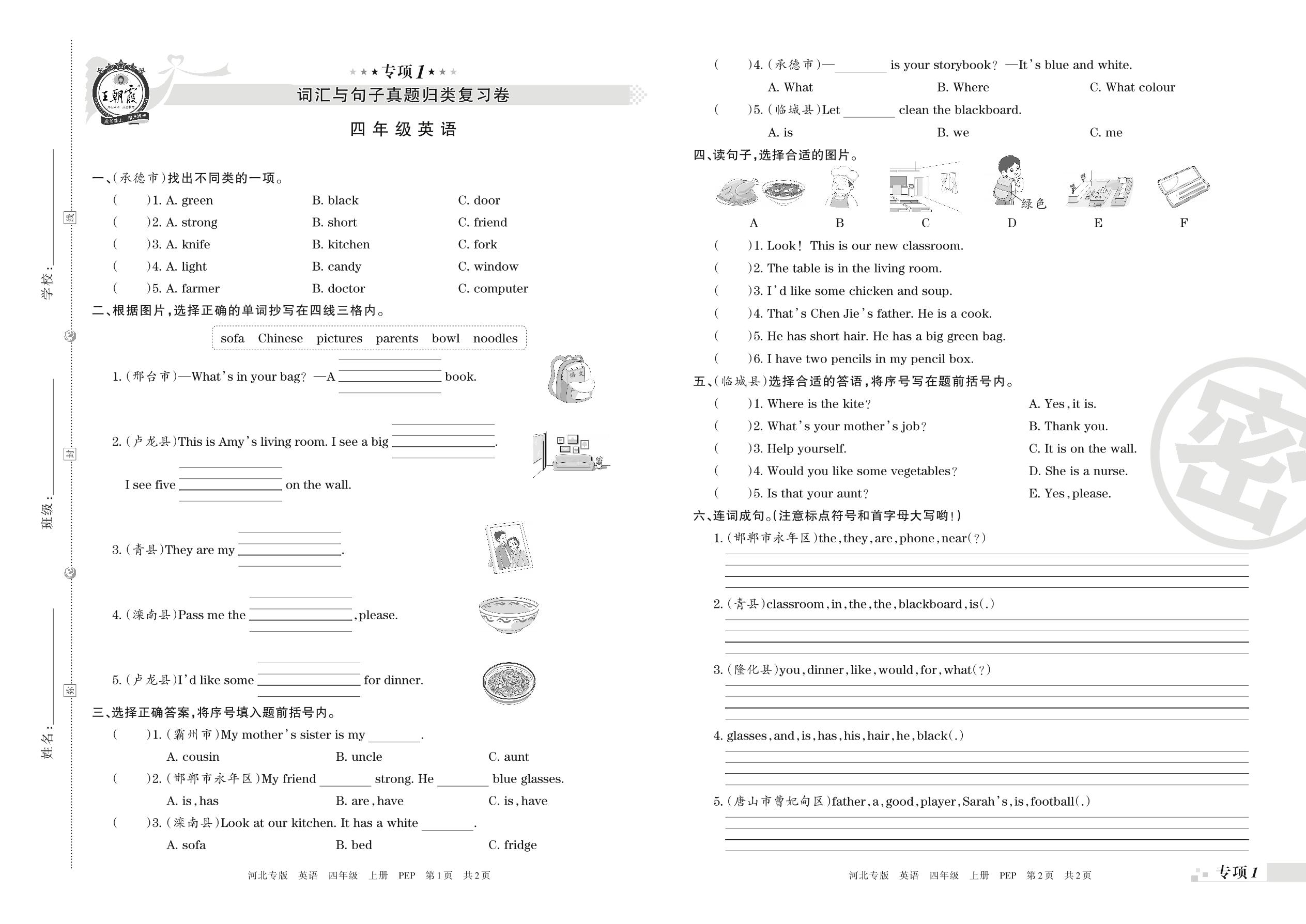 王朝霞期末专项卷——词汇与句子真题归类复习卷四年级上册英语(人教PEP版)_R211124105044305【1】