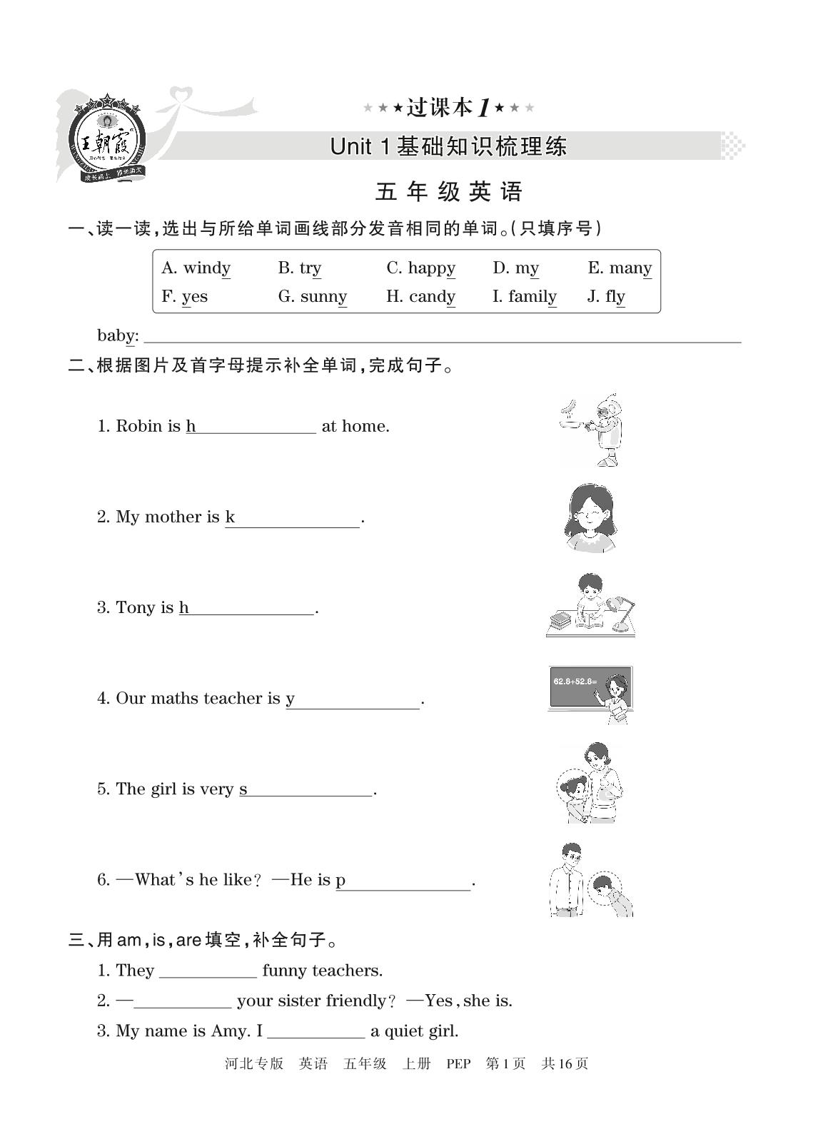 王朝霞期末过课本——Unit 1基础知识梳理练五年级上册英语(人教PEP版)_R211124105416121【1】