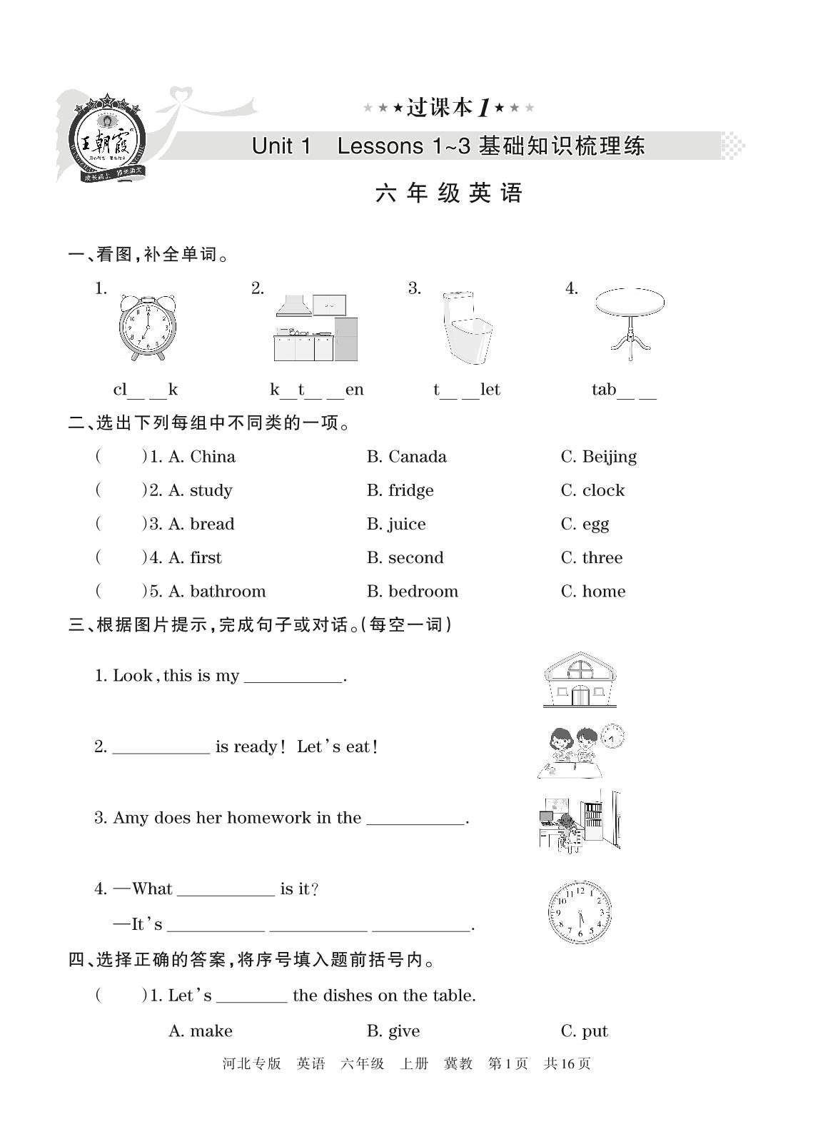 王朝霞期末过课本——Unit 1 Lessons 1~3 基础知识梳理练六年级上册英语(冀教版)【1】