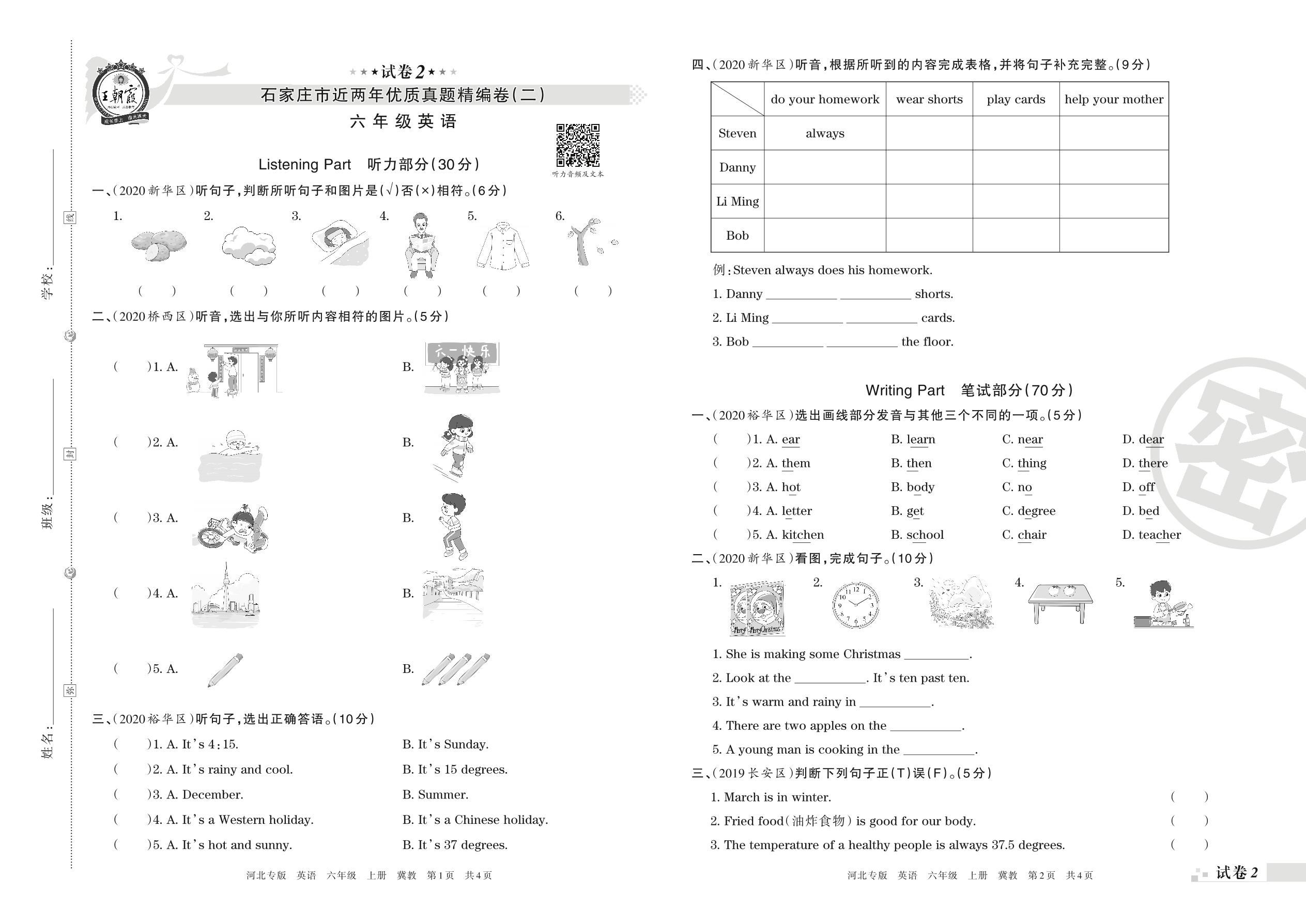 石家庄市近两年优质真题精编卷(二)六年级上册英语(冀教版)【2】