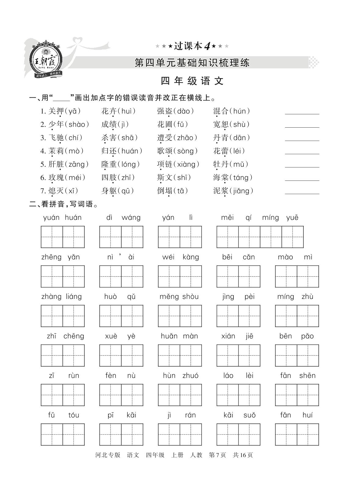 王朝霞期末过课本——第四单元基础知识梳理练四年级上册语文(人教版)_R211124112123135【4】