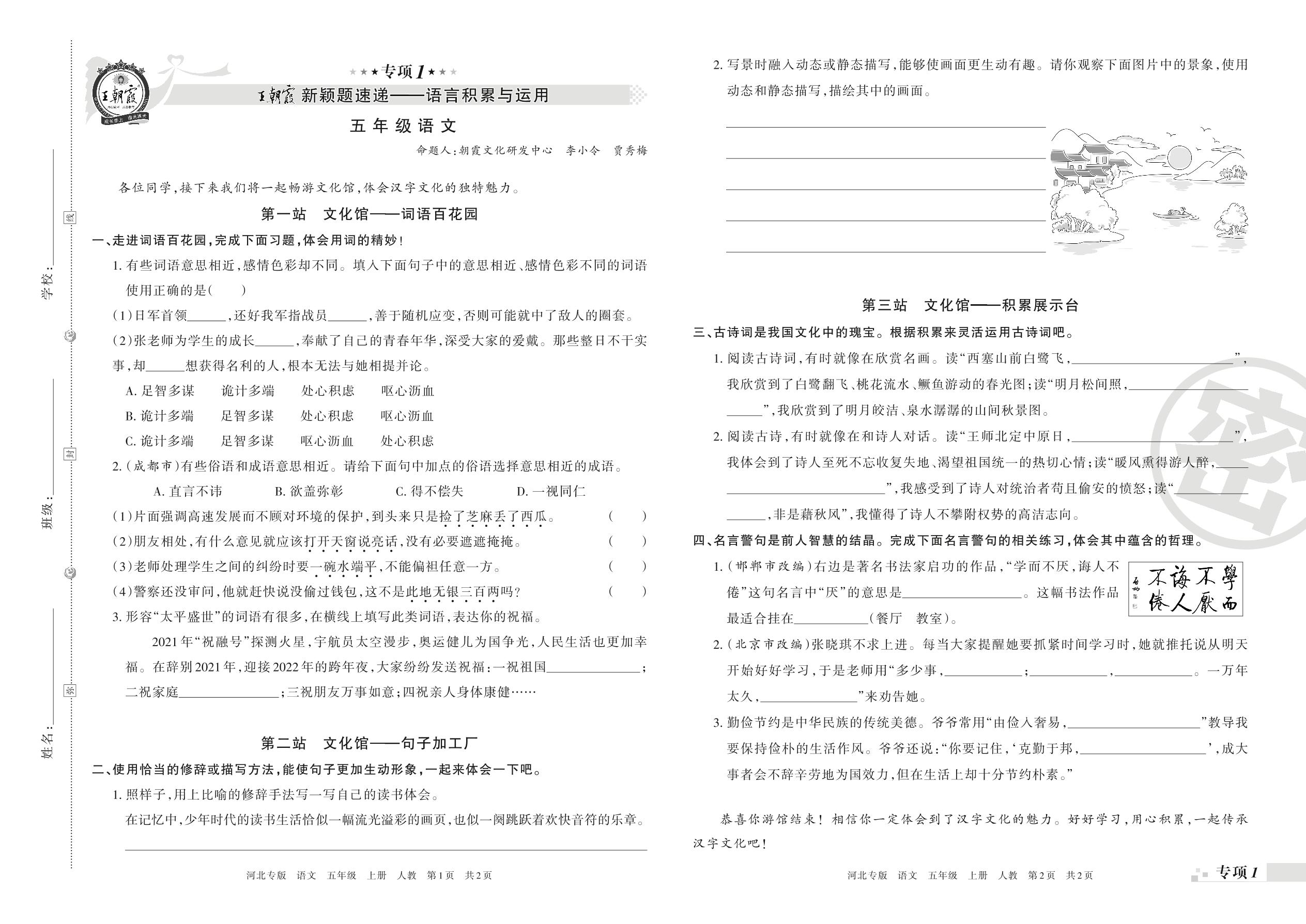 王朝霞期末专项卷——新颖题速递:语言积累与运用五年级上册语文(人教版)_R211124112411993【1】