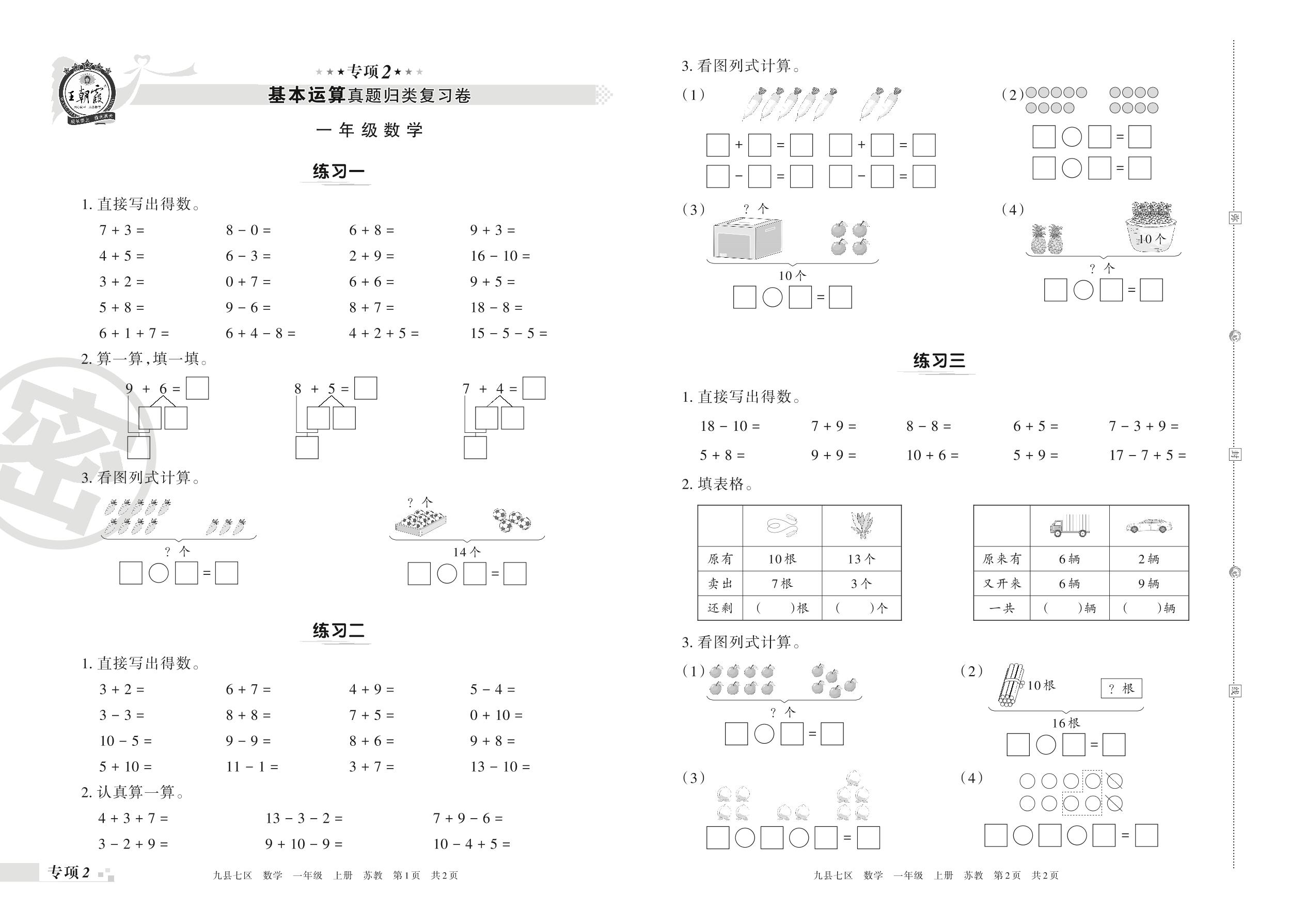 王朝霞期末专项卷——基本运算真题归类复习卷一年级上册数学(苏教版)【2】