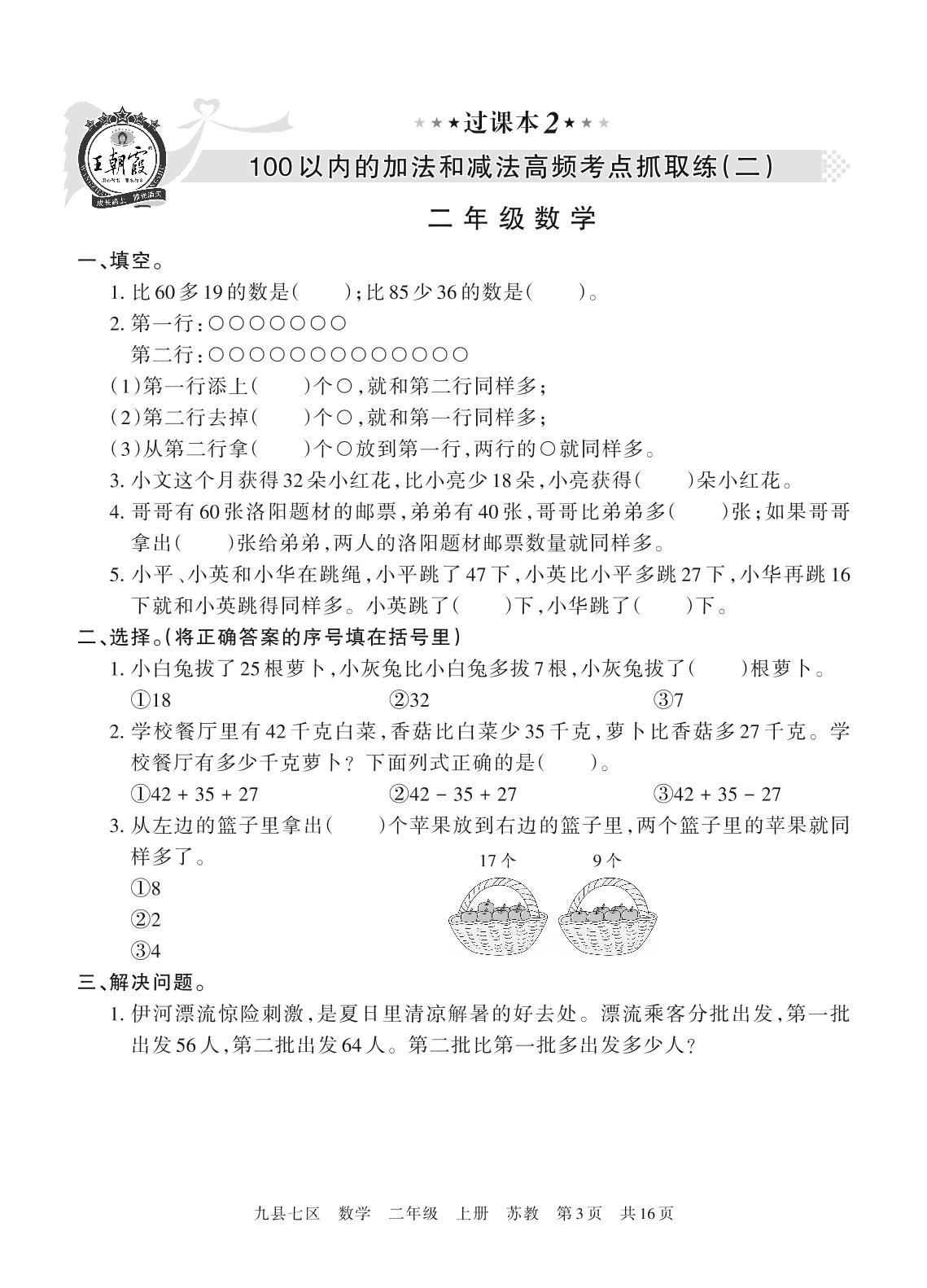 王朝霞期末过课本——100以内的加法和减法(二)二年级上册数学(苏教版)【2】