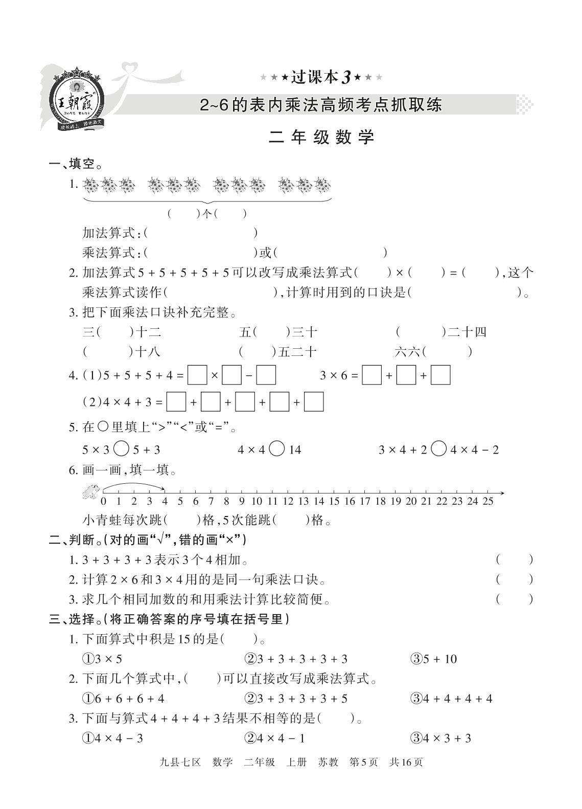 王朝霞期末过课本——2~6的表内乘法二年级上册数学(苏教版)【3】