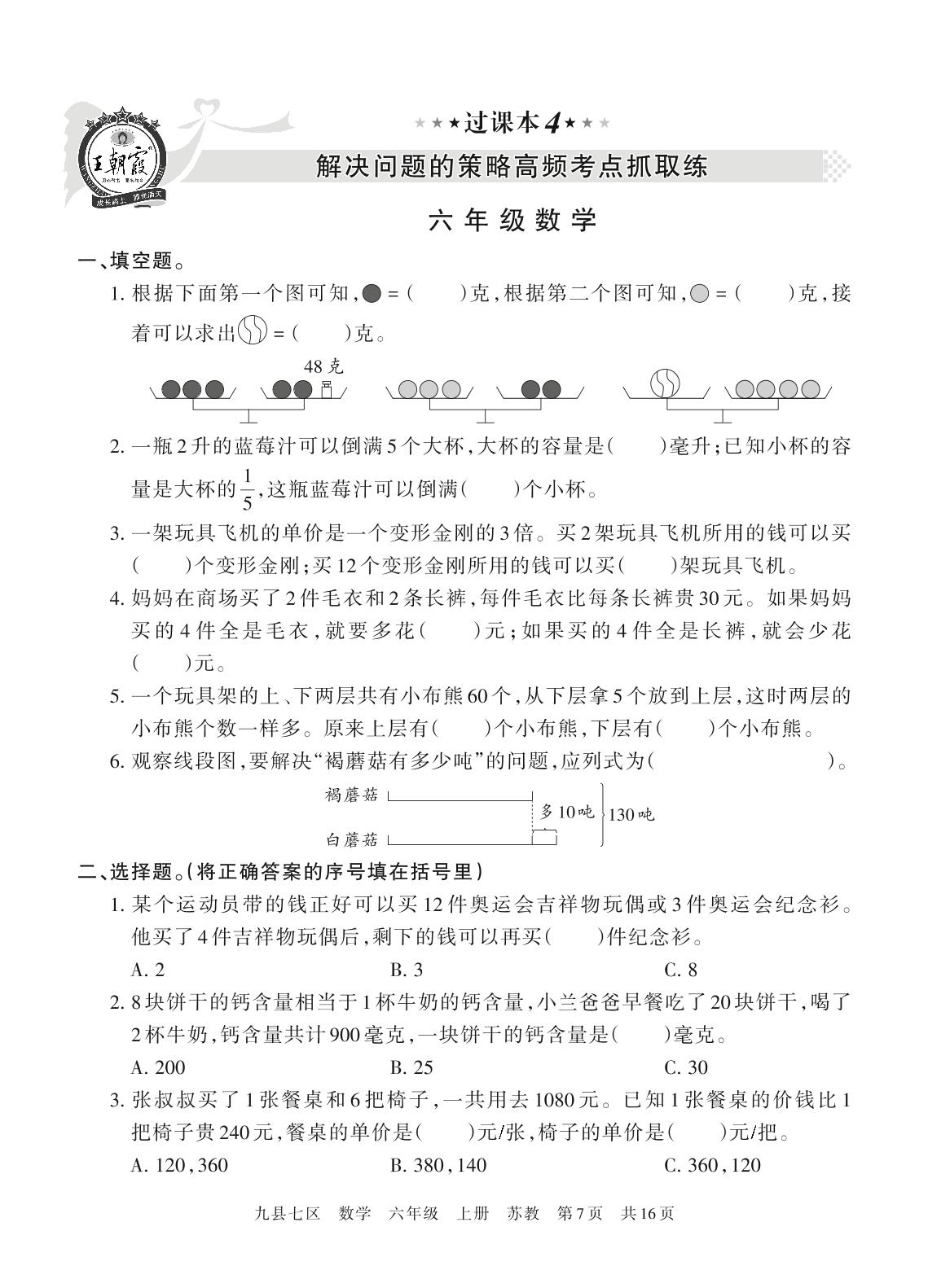 王朝霞期末过课本——解决问题的策略高频考点抓取练六年级上册数学(苏教版)_R211124155743189【4】
