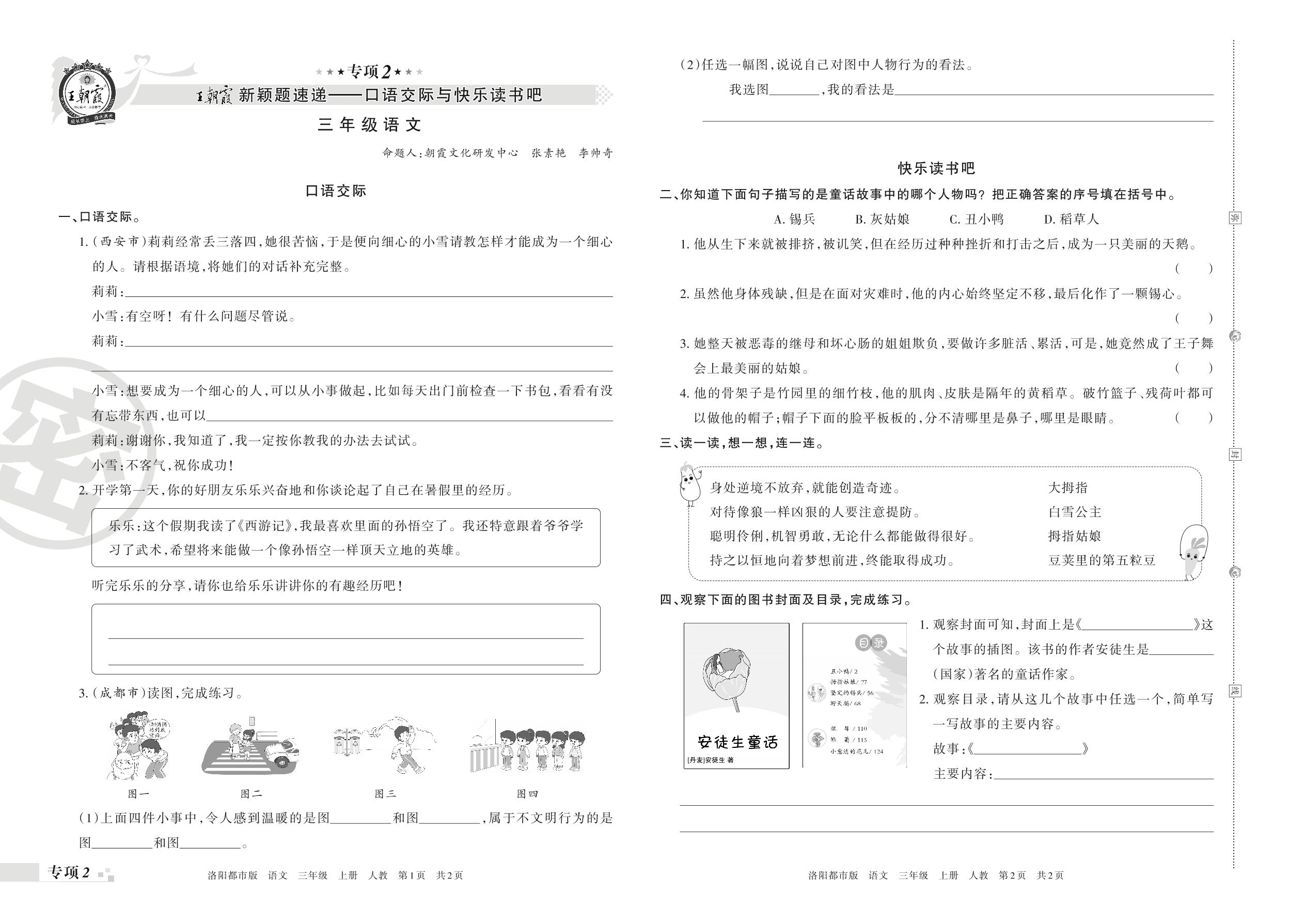 王朝霞期末专项卷——新颖题速递:口语交际与快乐读书吧三年级上册语文(人教版)_R211125085604813【2】