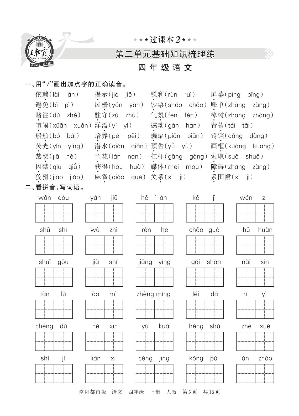王朝霞期末过课本——第二单元基础知识梳理练四年级上册语文(人教版)_R211125090043486【2】