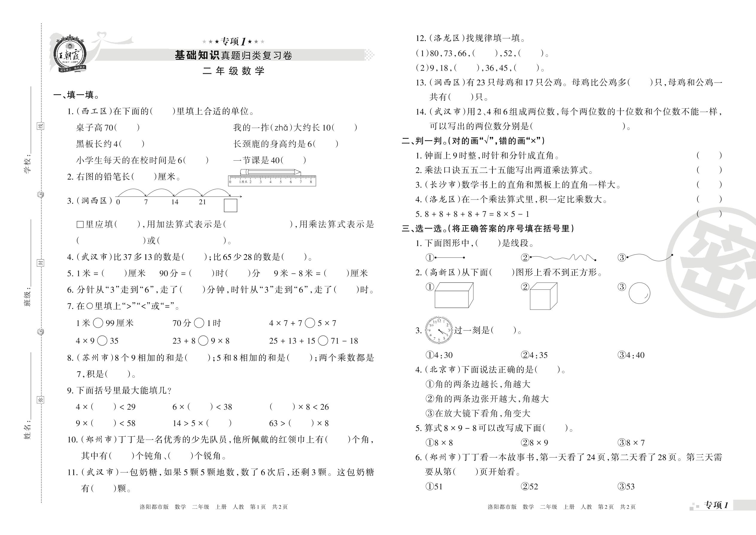 王朝霞期末专项卷——基础知识真题归类复习卷二年级上册数学(人教版)_R211125091728449【1】