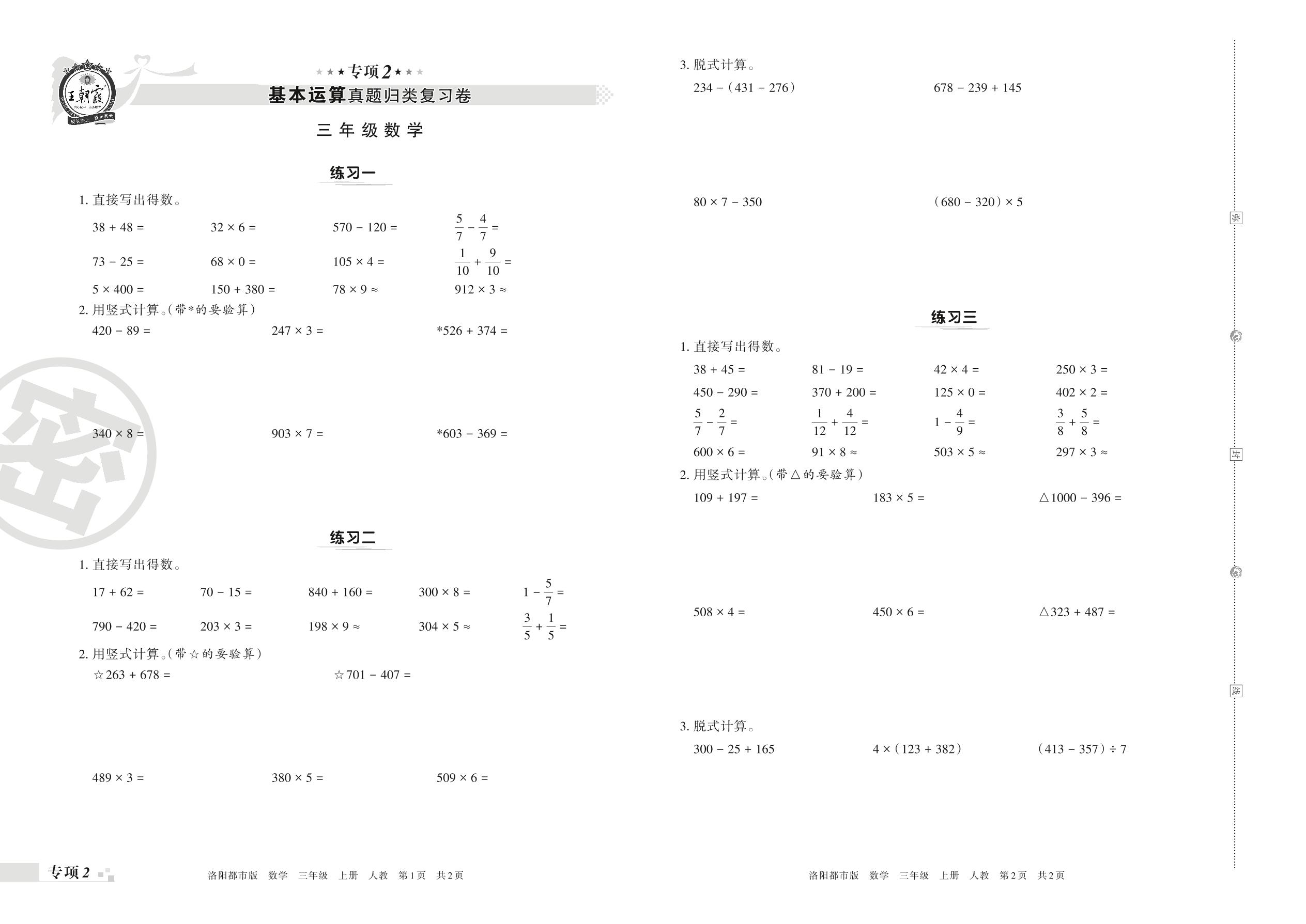 王朝霞期末专项卷——基本运算真题归类复习卷三年级上册数学(人教版)_R211125100315737【2】
