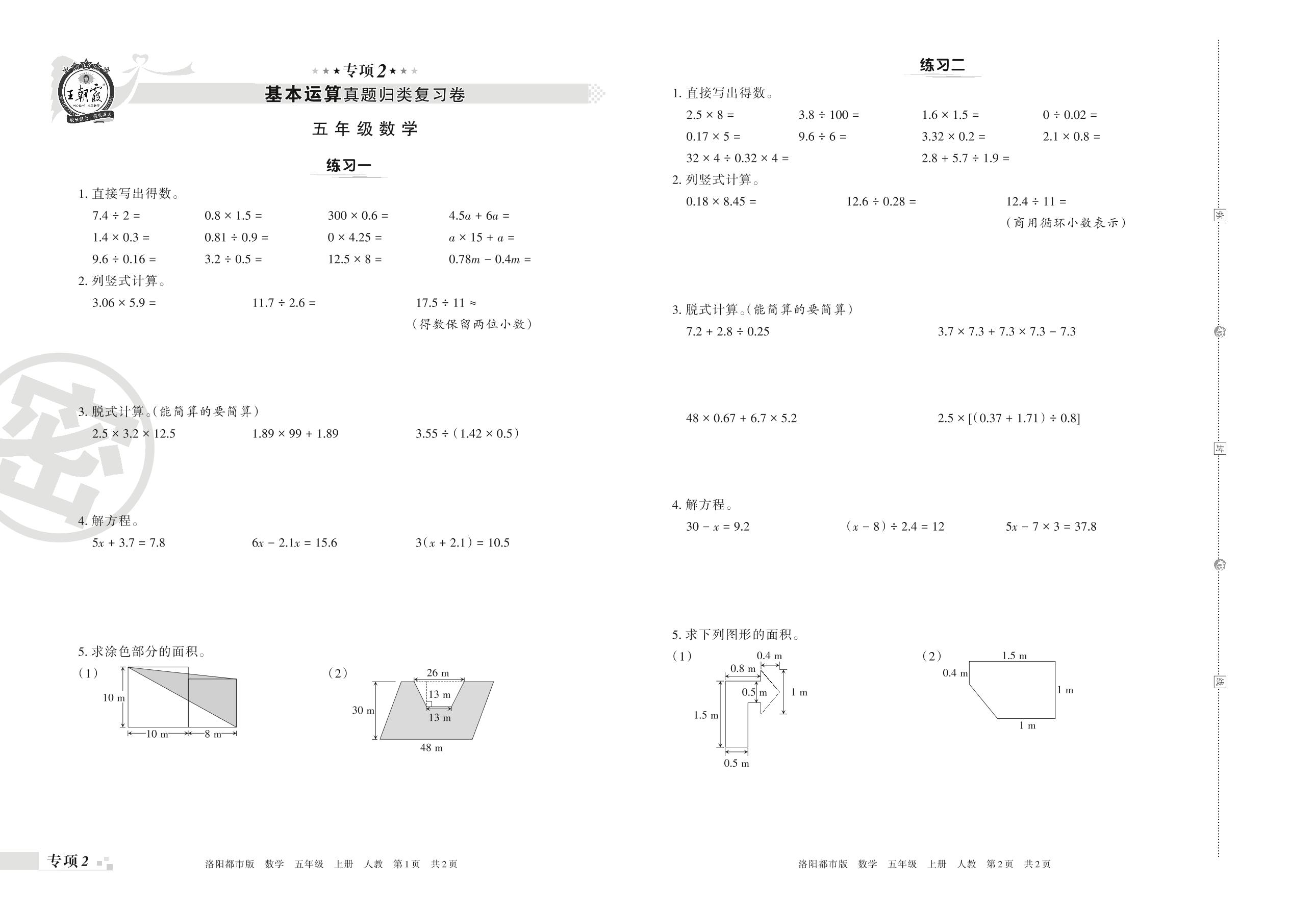 王朝霞期末专项卷——基本运算真题归类复习卷五年级上册数学(人教版)_R211125101119636【2】