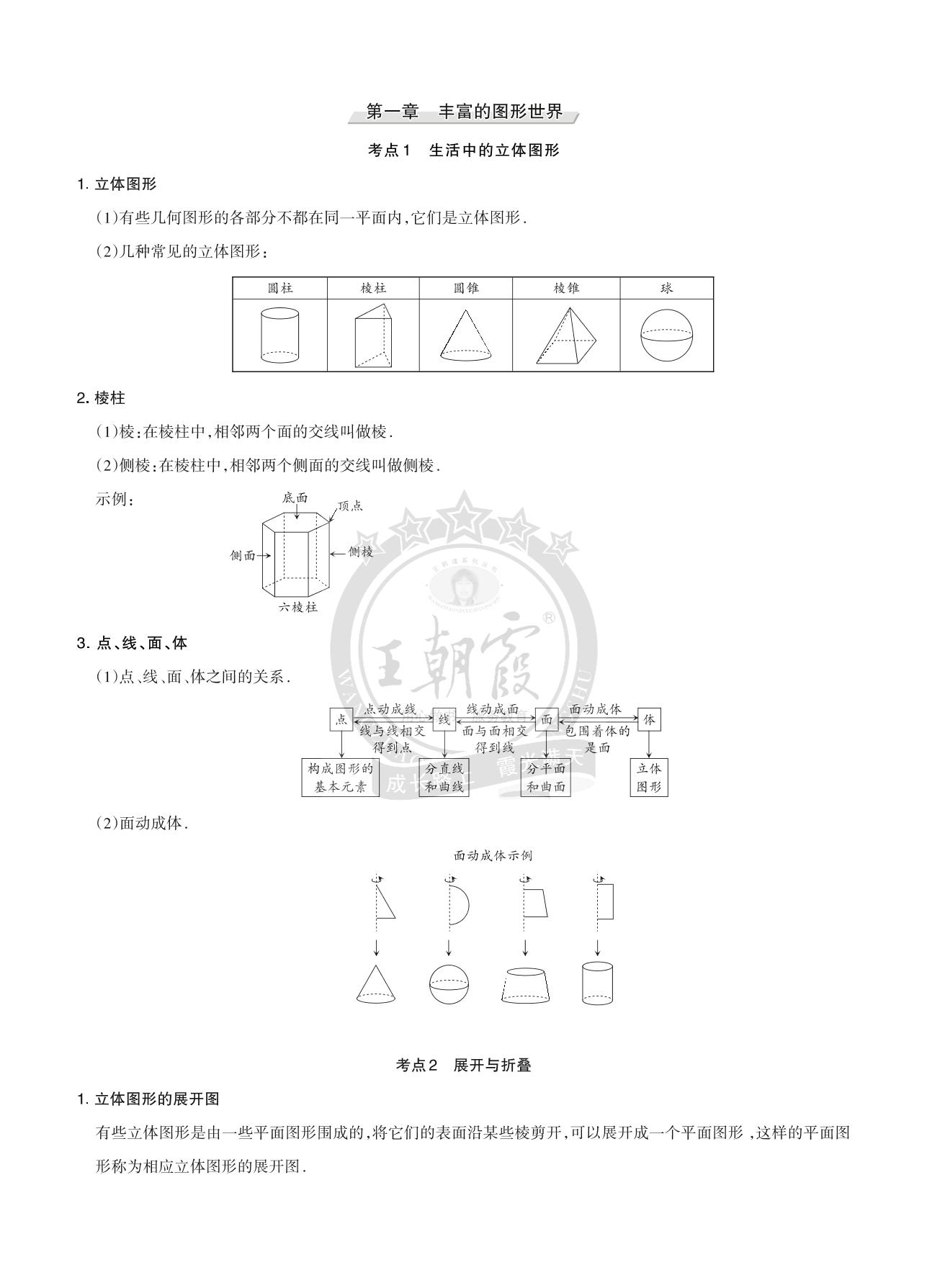 王朝霞期末知识梳理——第一章 丰富的图形世界七年级上册数学(北师版)_R211125112920123【1】