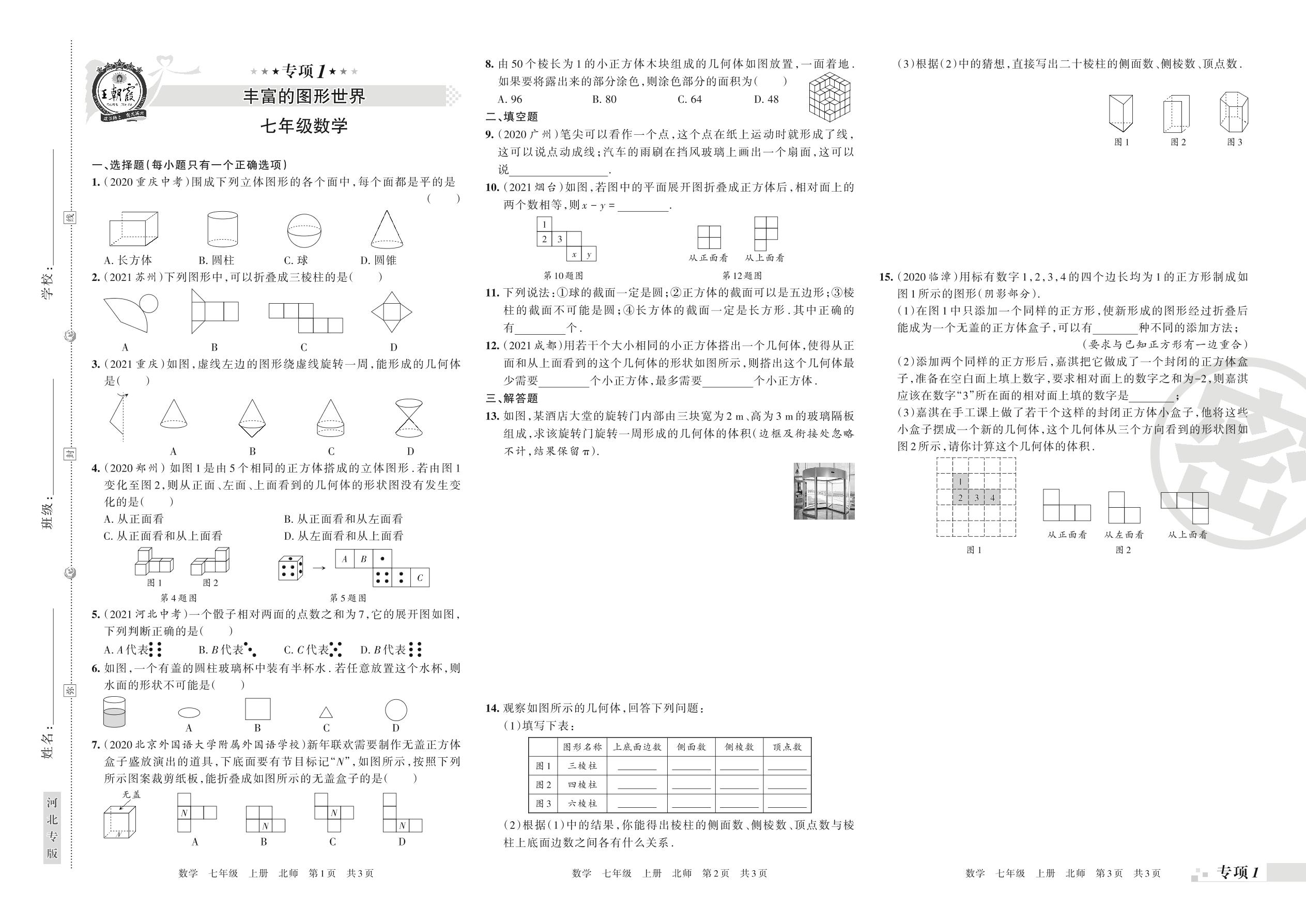 王朝霞期末专项卷——丰富的图形世界七年级上册数学(北师版)【1】