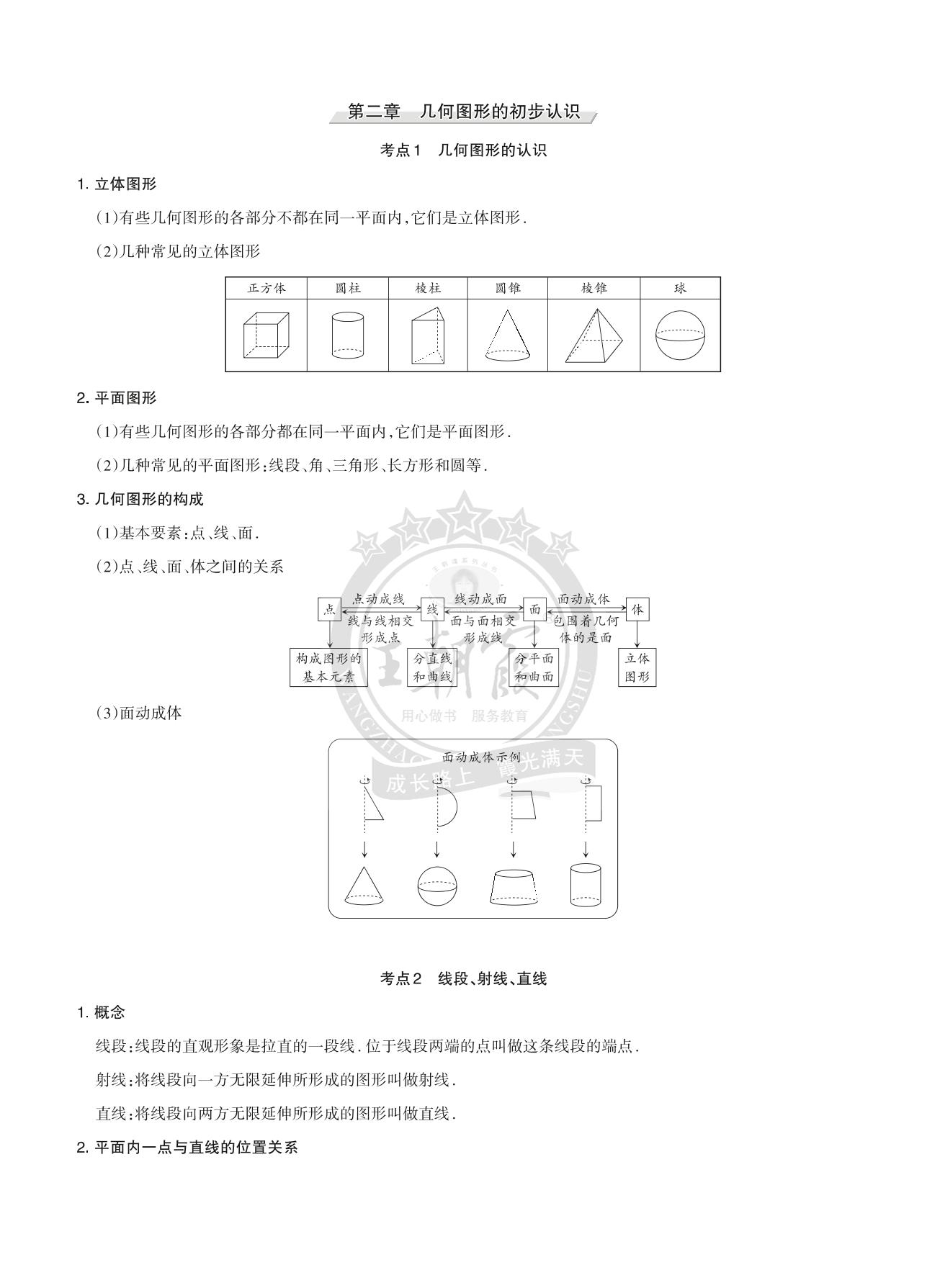 王朝霞期末知识梳理——第二章 几何图形的初步认识七年级上册数学(冀教版)【2】