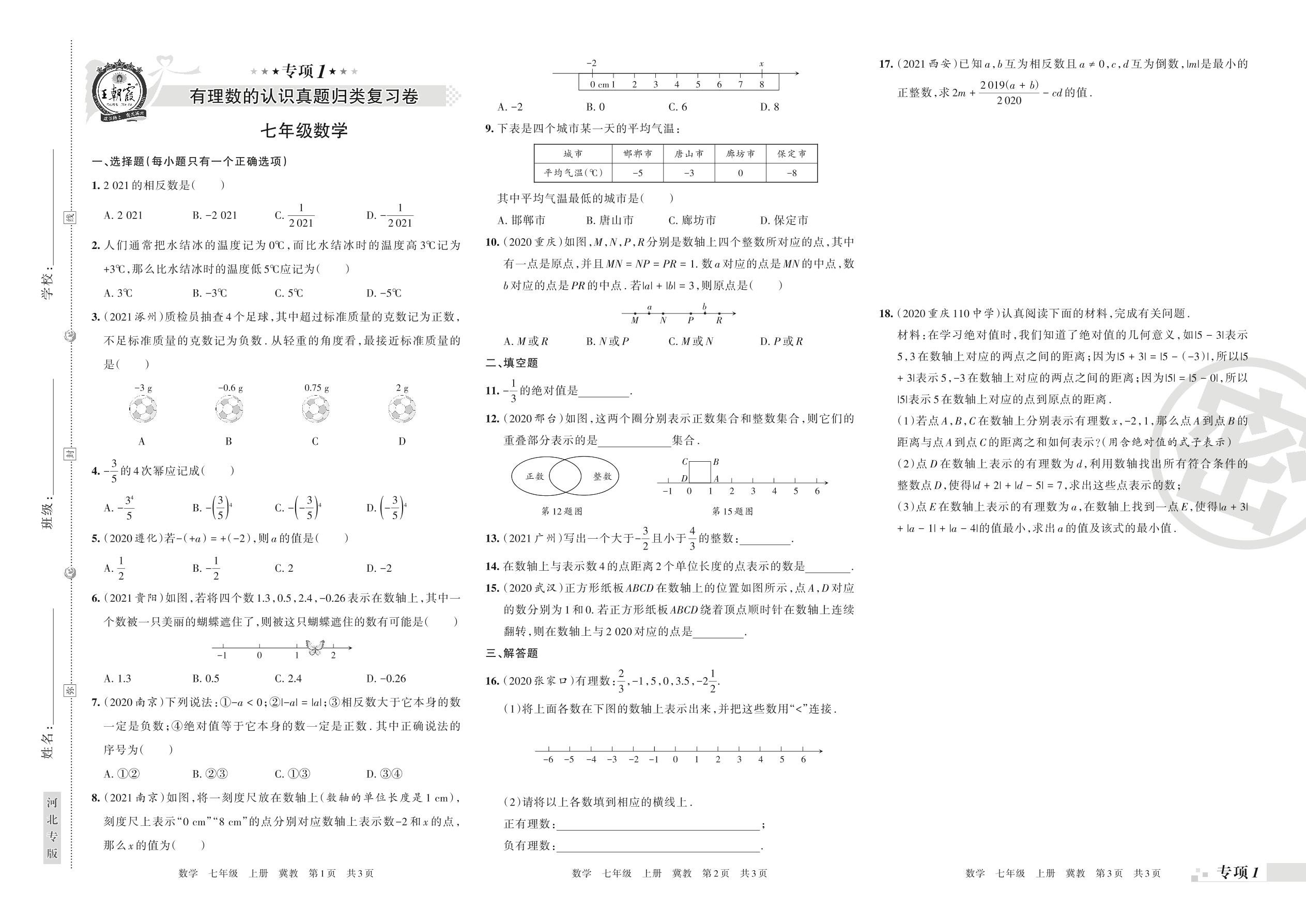 王朝霞期末专项卷——有理数的认识真题归类复习卷七年级上册数学(冀教版)【1】