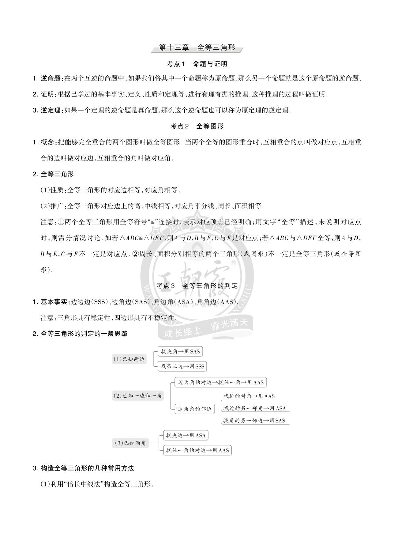 王朝霞期末知识梳理——第十三章 全等三角形八年级上册数学(冀教版)【2】