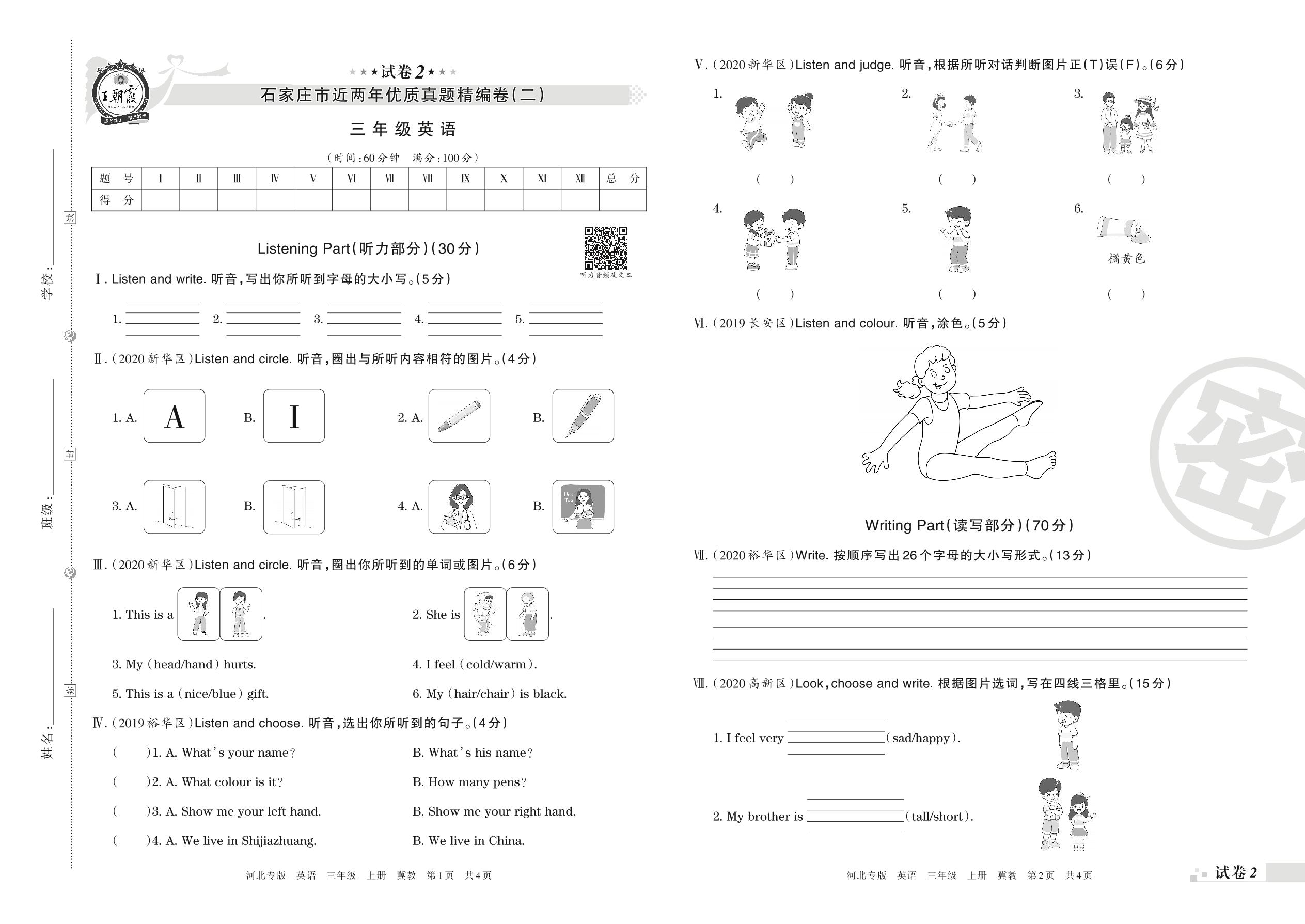 石家庄市近两年优质真题精编卷(二)三年级上册英语(冀教版)【2】