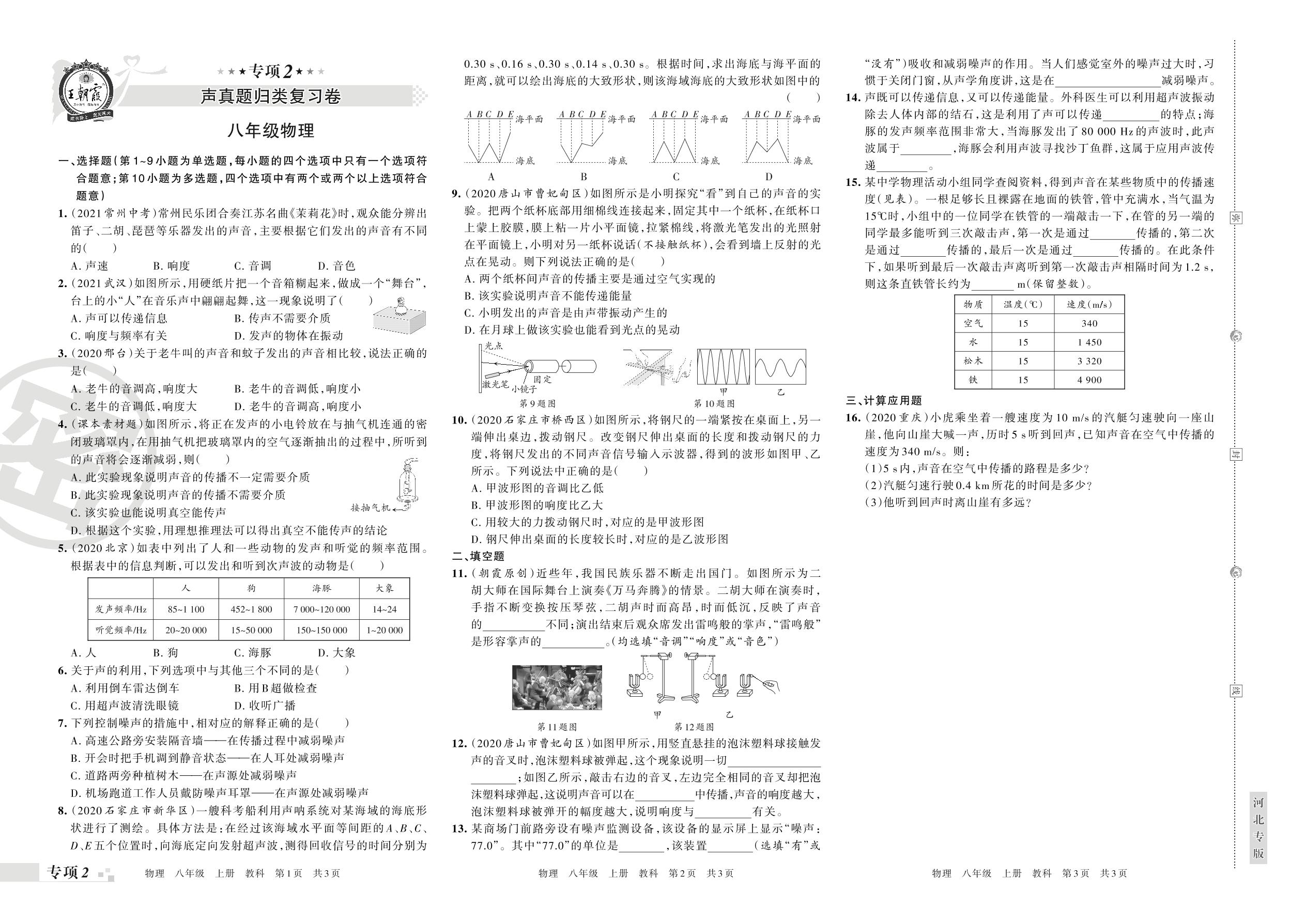 王朝霞期末专项卷——声真题归类复习卷八年级上册物理(教科版)【2】