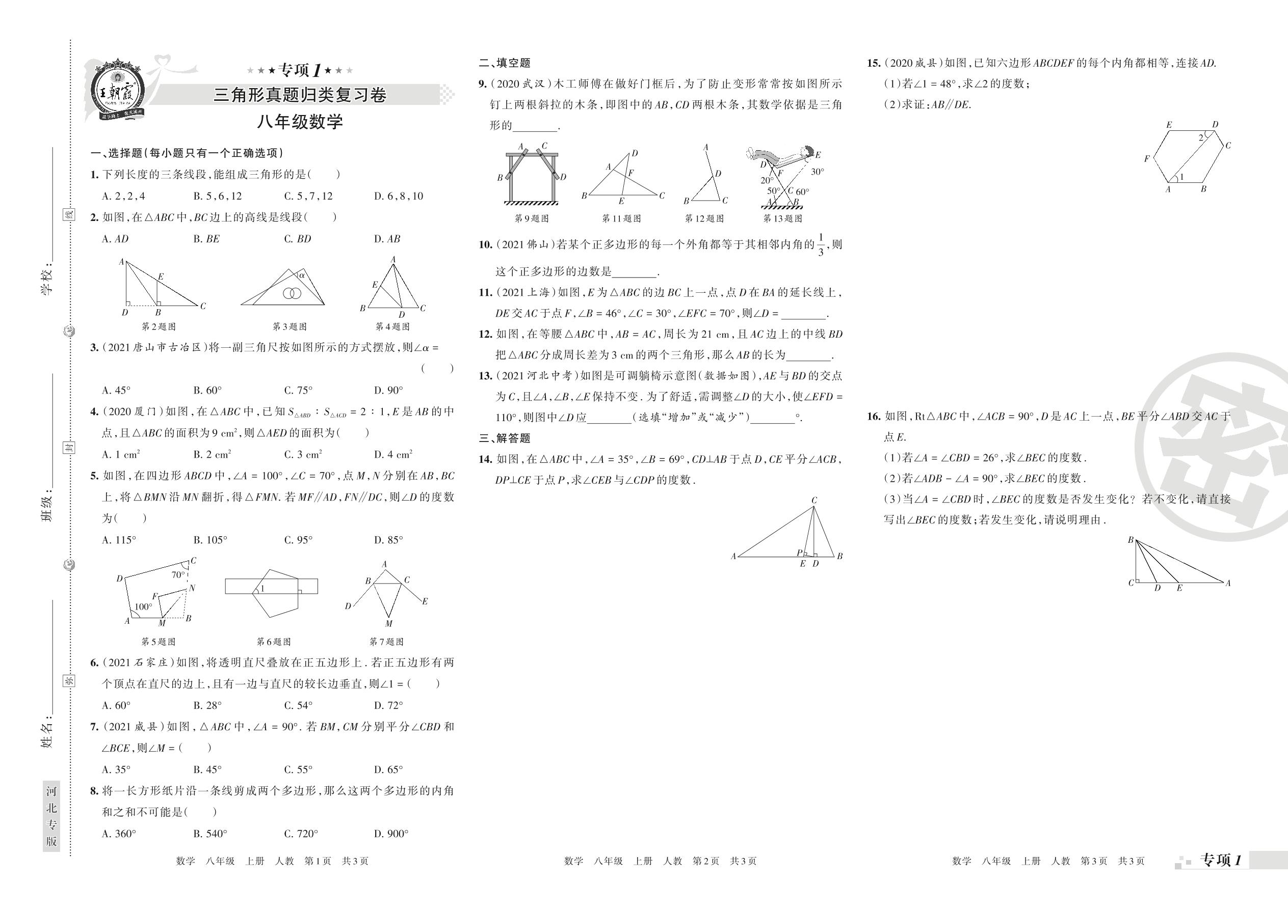 王朝霞期末专项卷——三角形真题归类复习卷八年级上册数学(人教版)_R211126112413897【1】