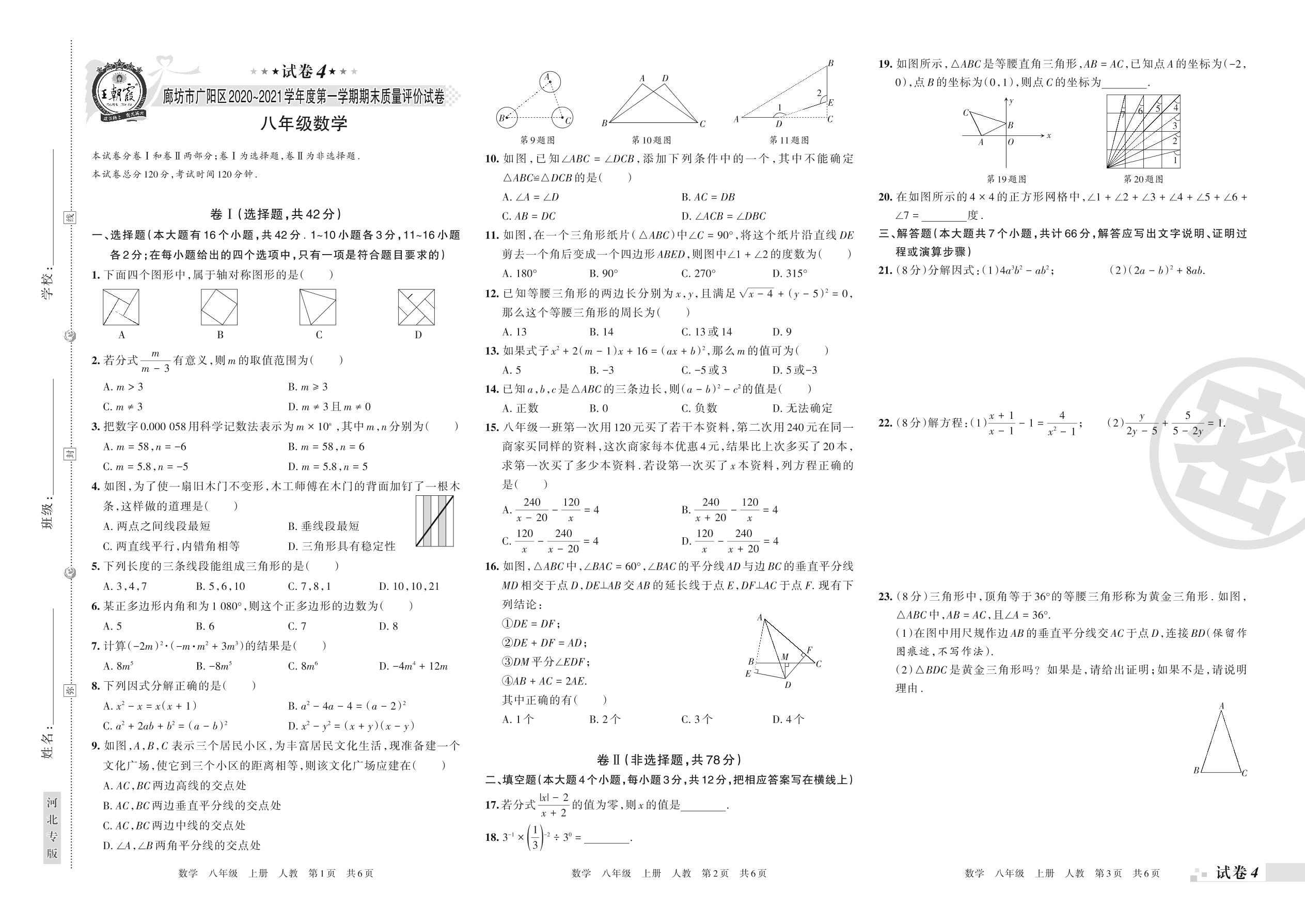 廊坊市广阳区2020~2021学年度第一学期期末质量评价试卷八年级数学(人教版)【4】