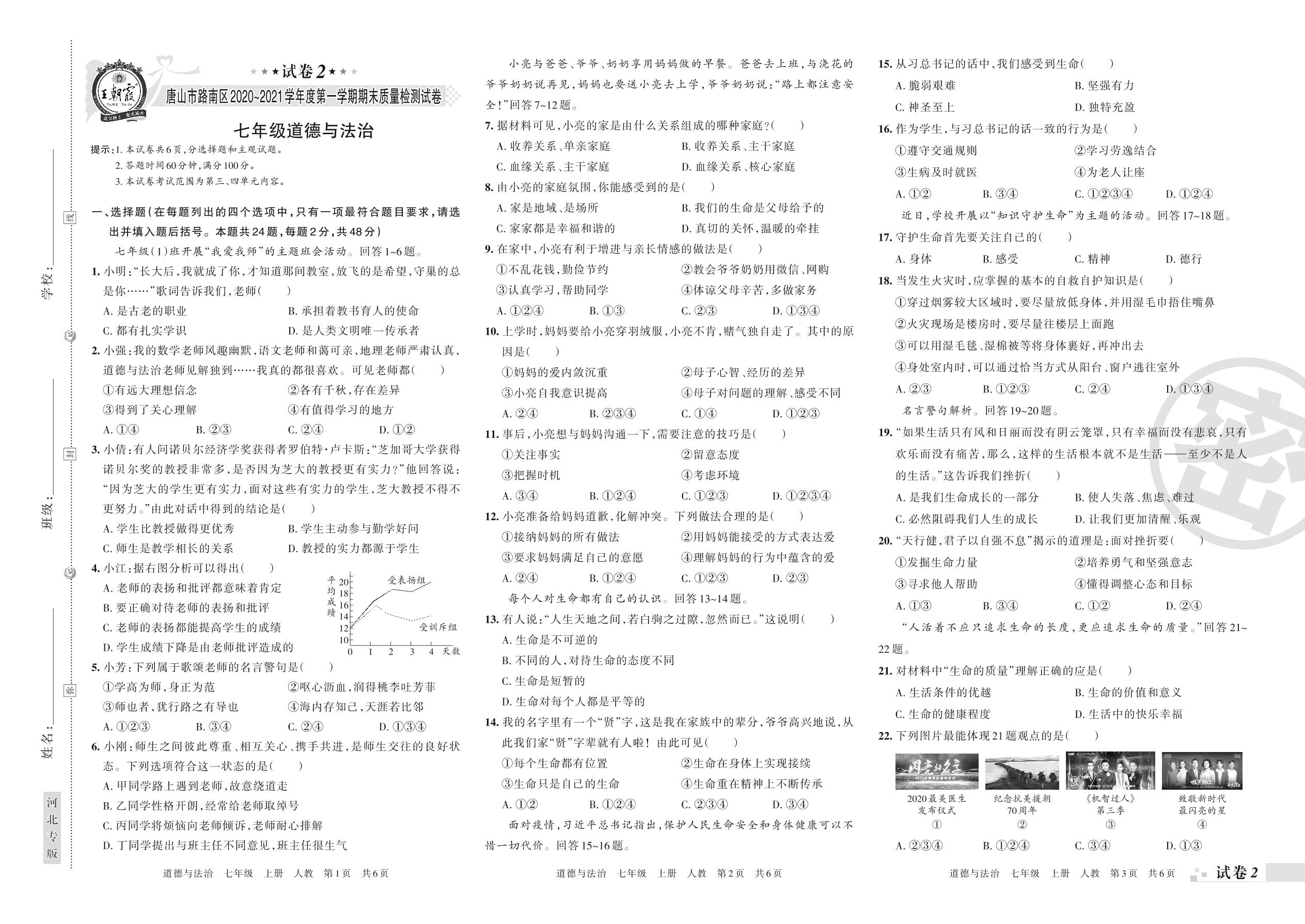 唐山市路南区2020~2021学年度第一学期期末质量检测试卷七年级道德与法治(人教版)【2】