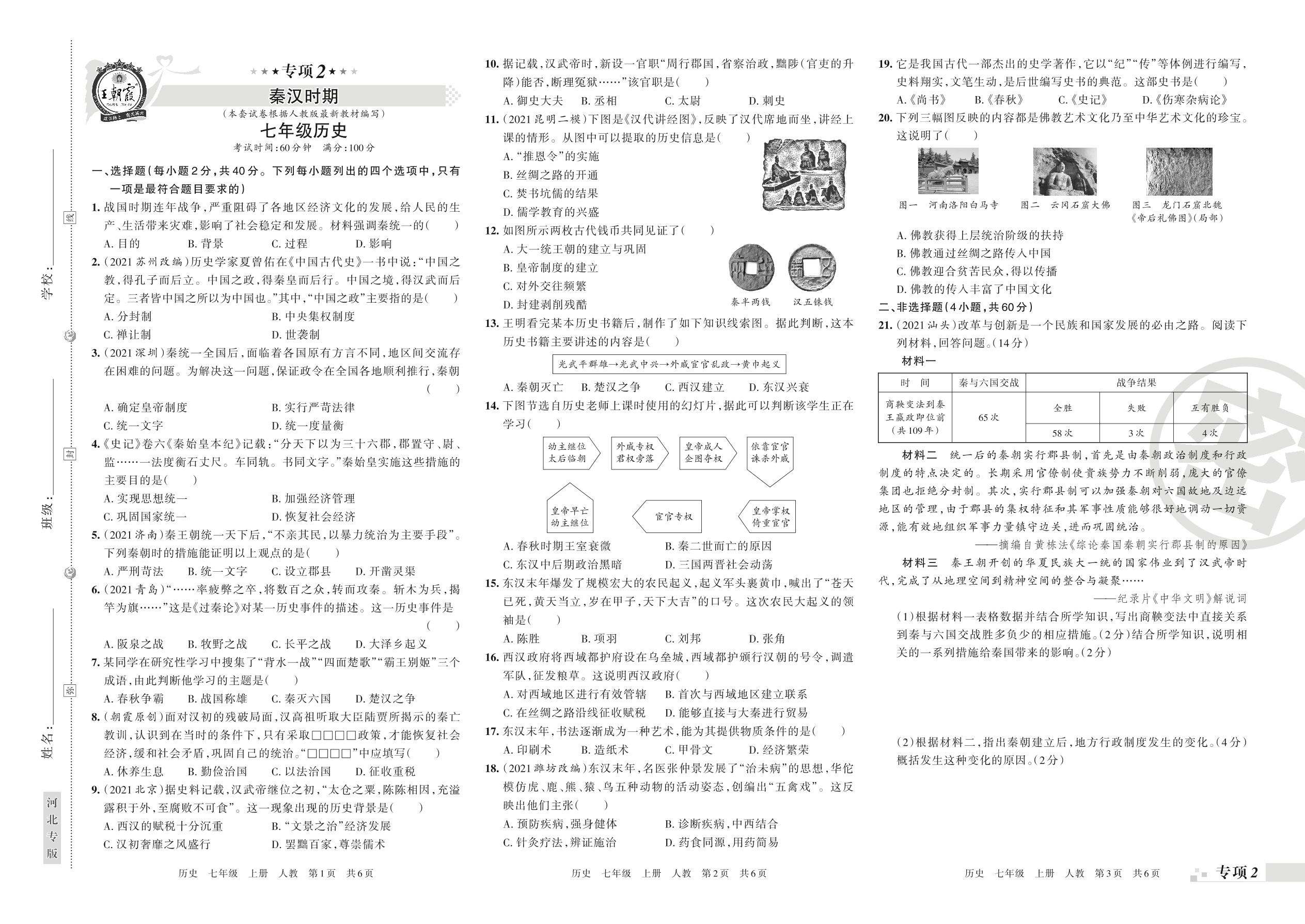 王朝霞期末专项卷——秦汉时期七年级上册历史(人教版)【2】