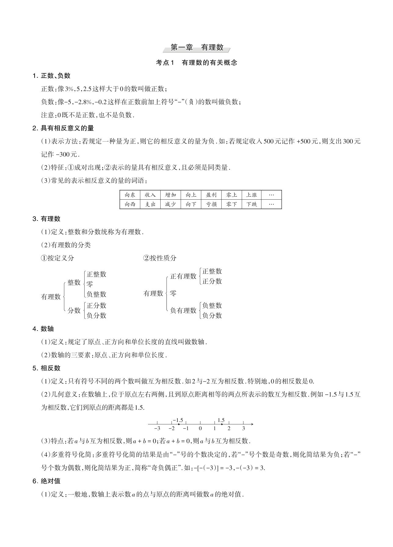 王朝霞期末知识梳理——第一章 有理数七年级上册数学(人教版)_R211126115552097【1】