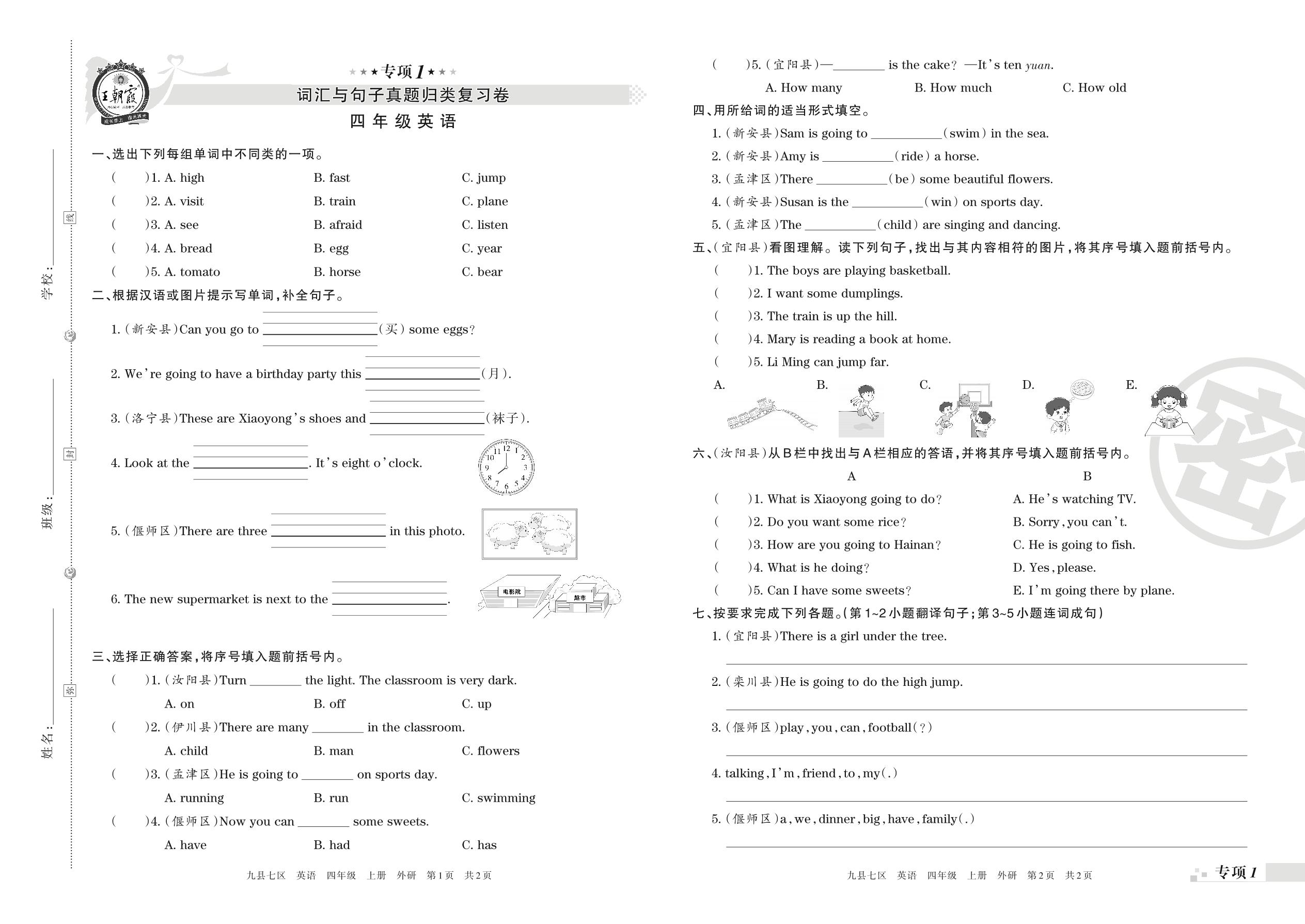 王朝霞期末专项卷——词汇与句子真题归类复习卷四年级上册英语(外研版)【1】