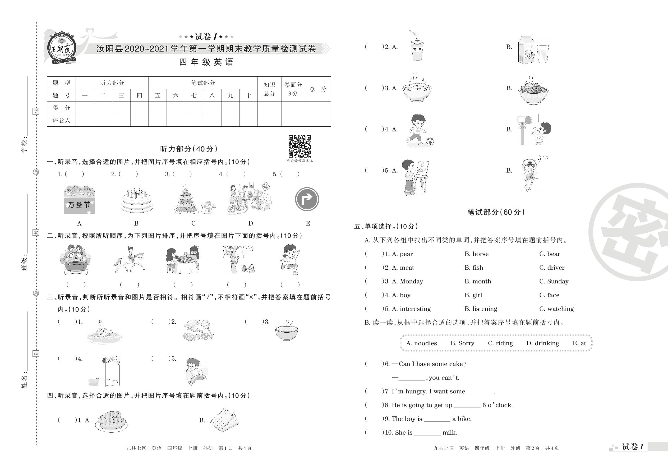 四年级英语外研版(三起始)上册期末卷