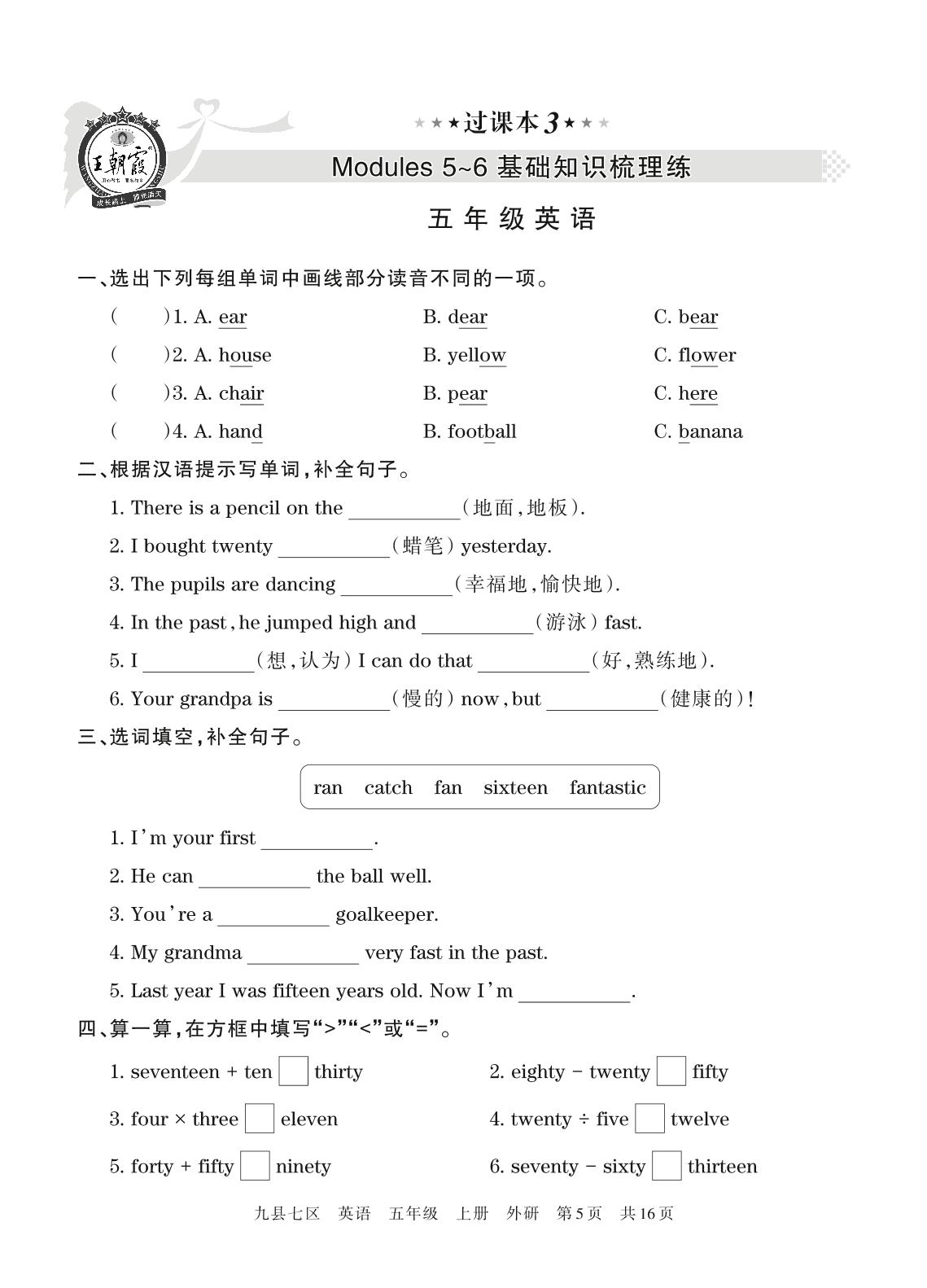 王朝霞期末过课本——Modules 5~6基础知识梳理练五年级上册英语(外研版)【3】