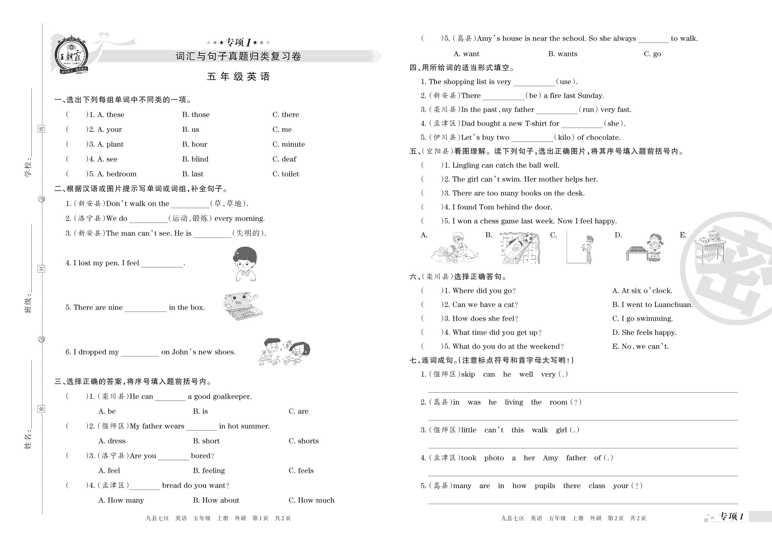 五年级英语外研版(三起始)上册专项卷