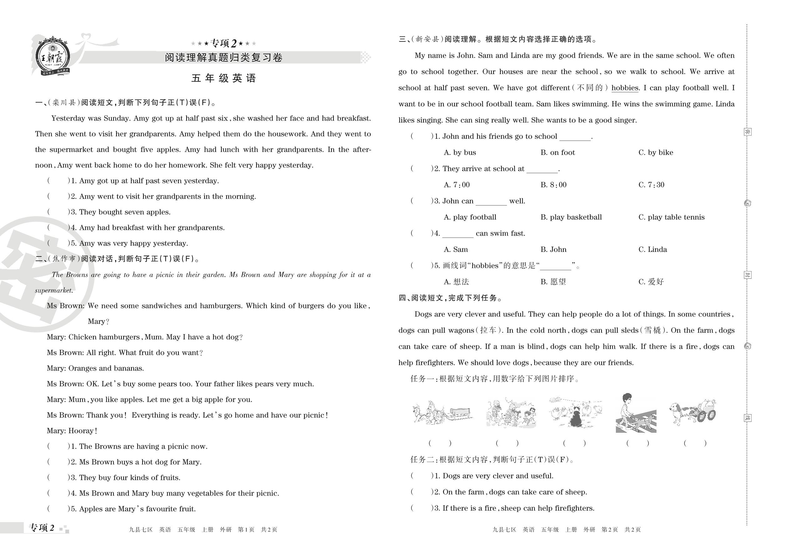 王朝霞期末专项卷——阅读理解真题归类复习卷五年级上册英语(外研版)【2】