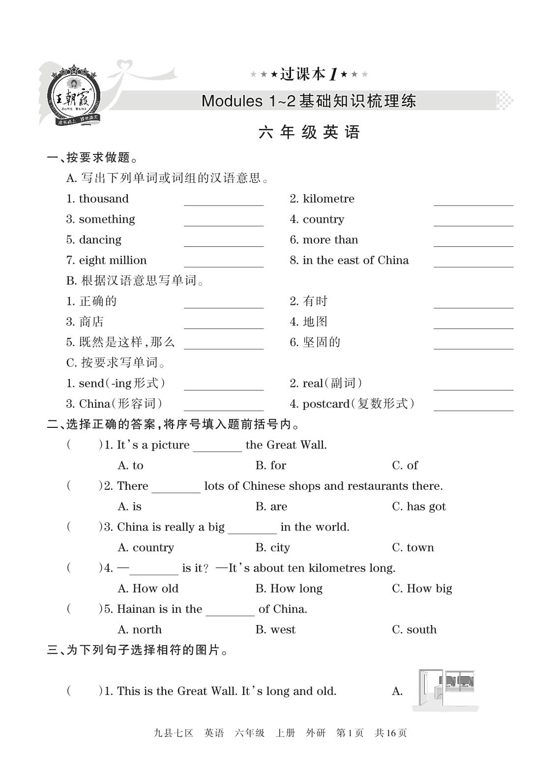 王朝霞期末过课本——Modules 1~2基础知识梳理练六年级上册英语(外研版)【1】