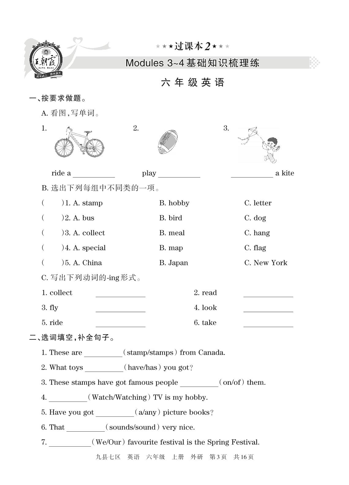 王朝霞期末过课本——Modules 3~4基础知识梳理练六年级上册英语(外研版)【2】