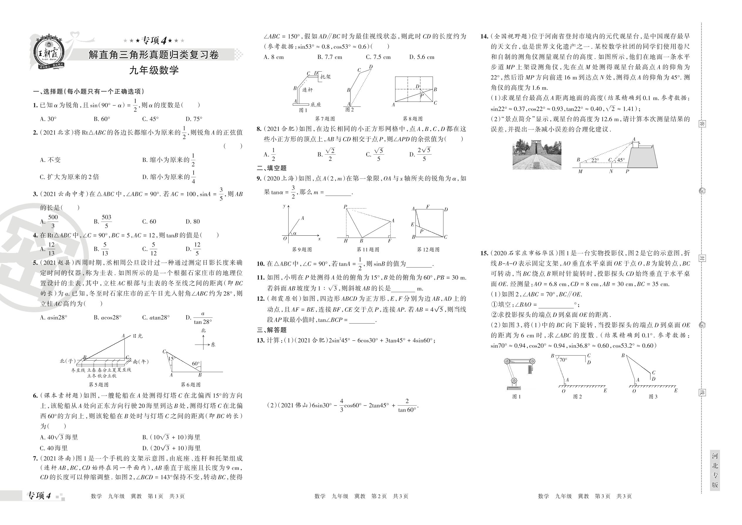 2021-2022学年第一学期王朝霞期末专项卷——解直角三角形真题归类复习卷九年级数学(冀教版)【4】