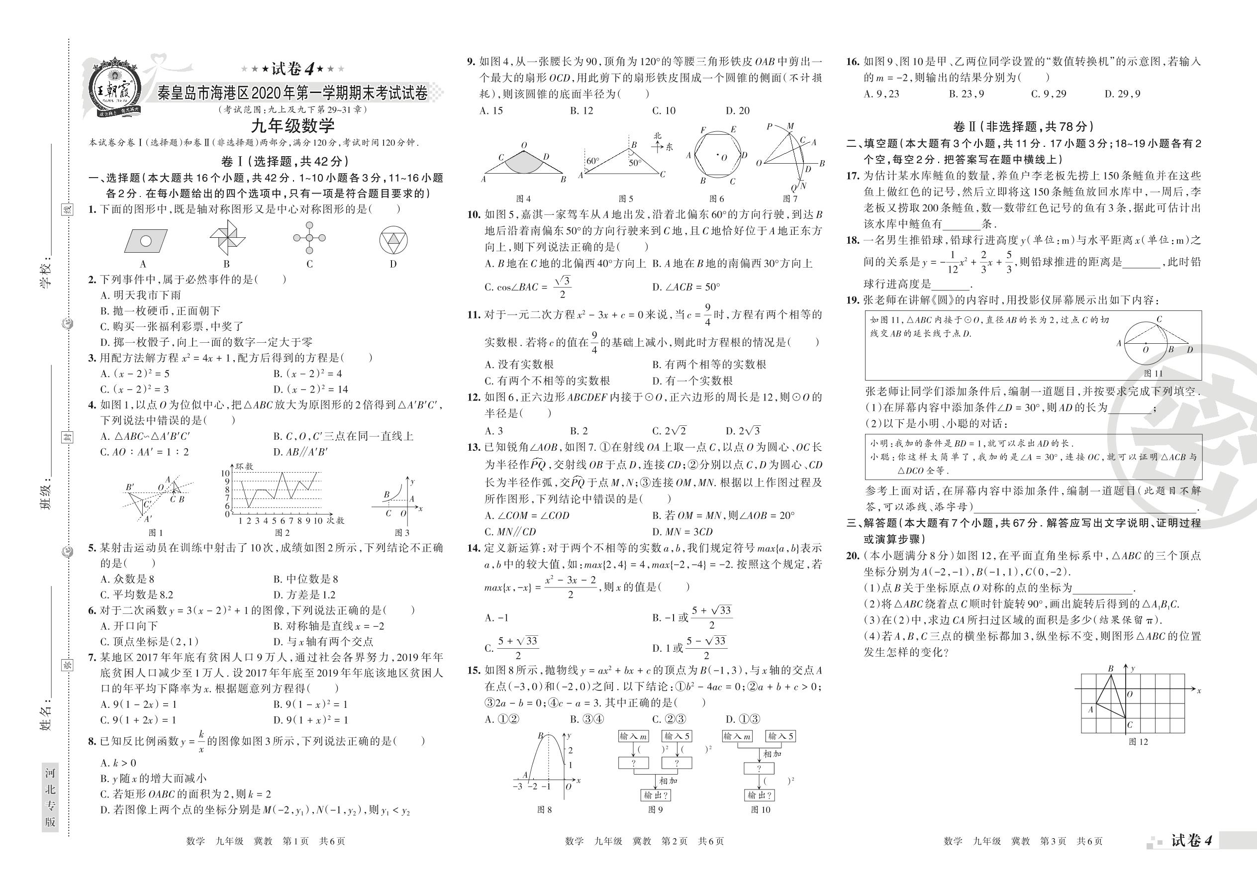 秦皇岛市海港区2020年第一学期期末考试试卷九年级数学(冀教版)【4】