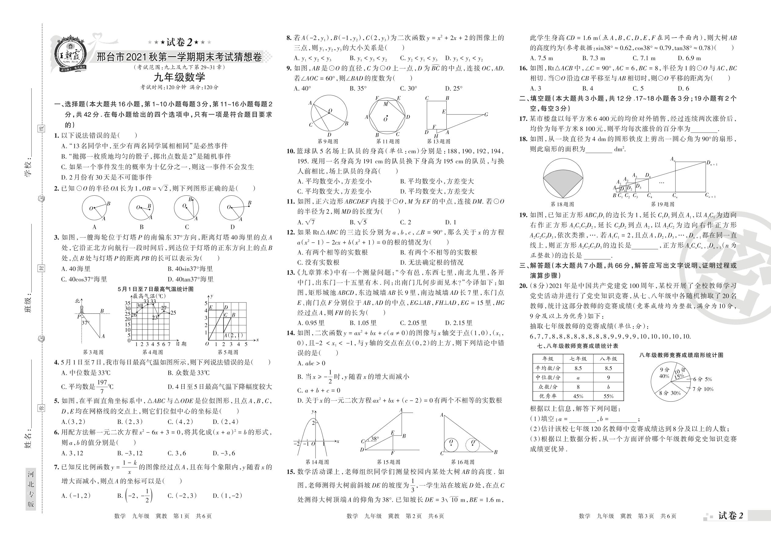 邢台市2021秋第一学期期末考试猜想卷九年级数学(冀教版)【2】