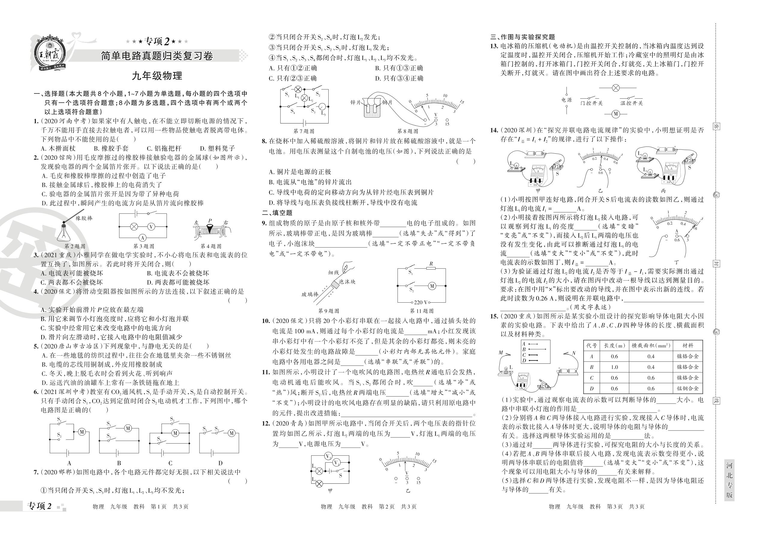 2021秋上册期末专项卷A版——简单电路真题归类复习卷九年级全一册物理(教科版)【2】