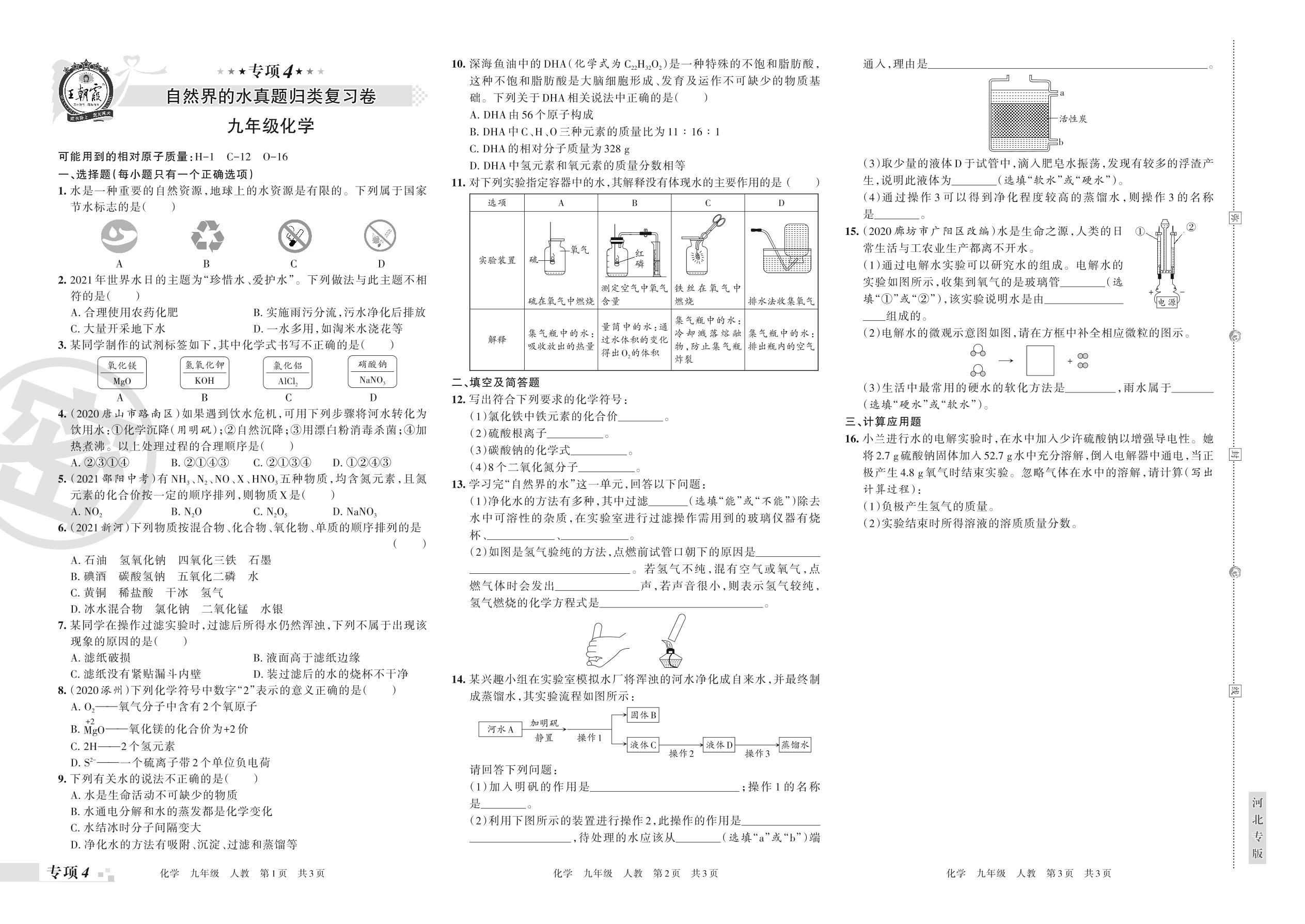 2021-2022学年第一学期王朝霞期末专项卷——自然界的水真题归类复习卷九年级化学(人教版)【4】