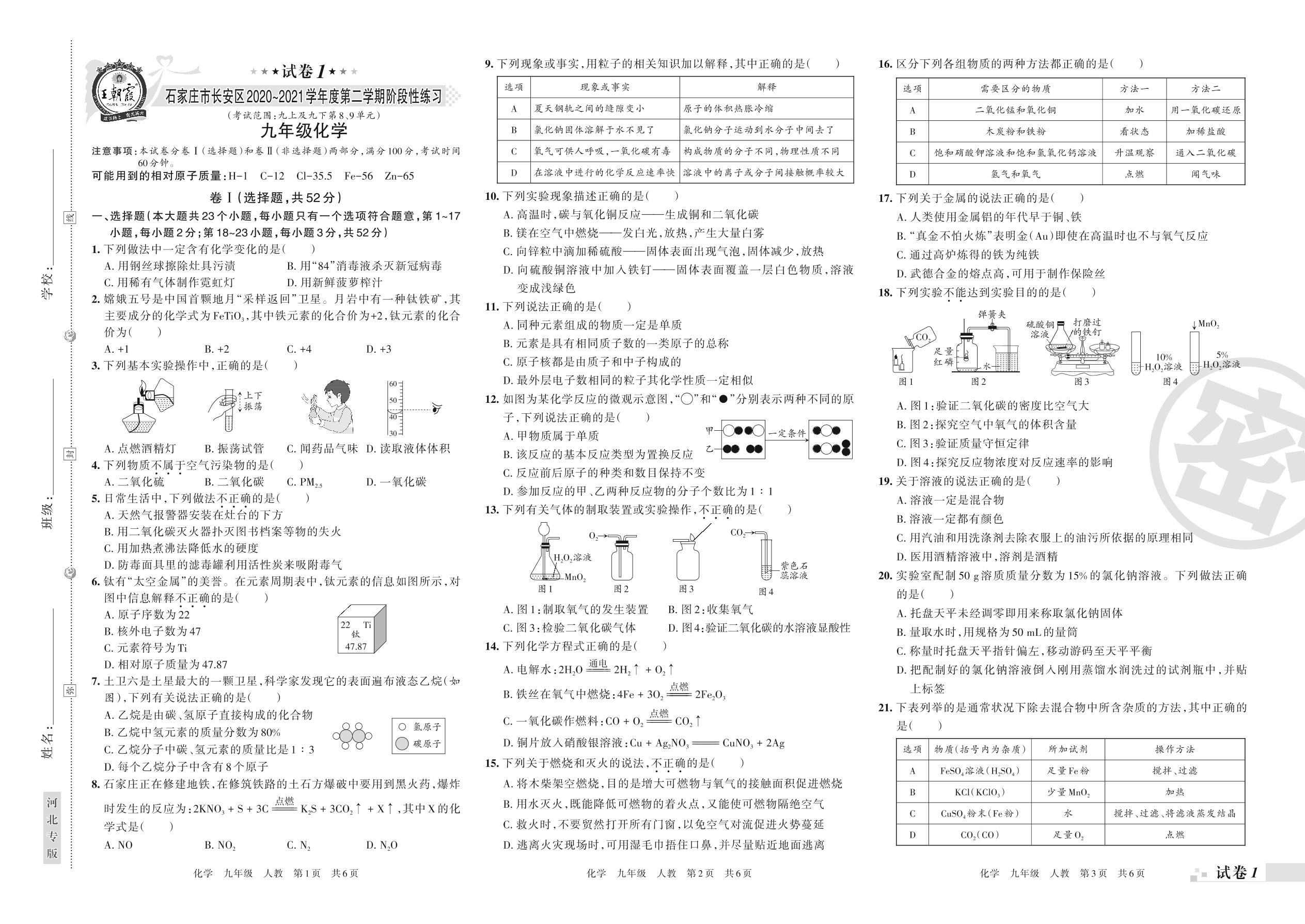 石家庄市长安区2020~2021学年度第二学期阶段性练习九年级化学(人教版)【1】