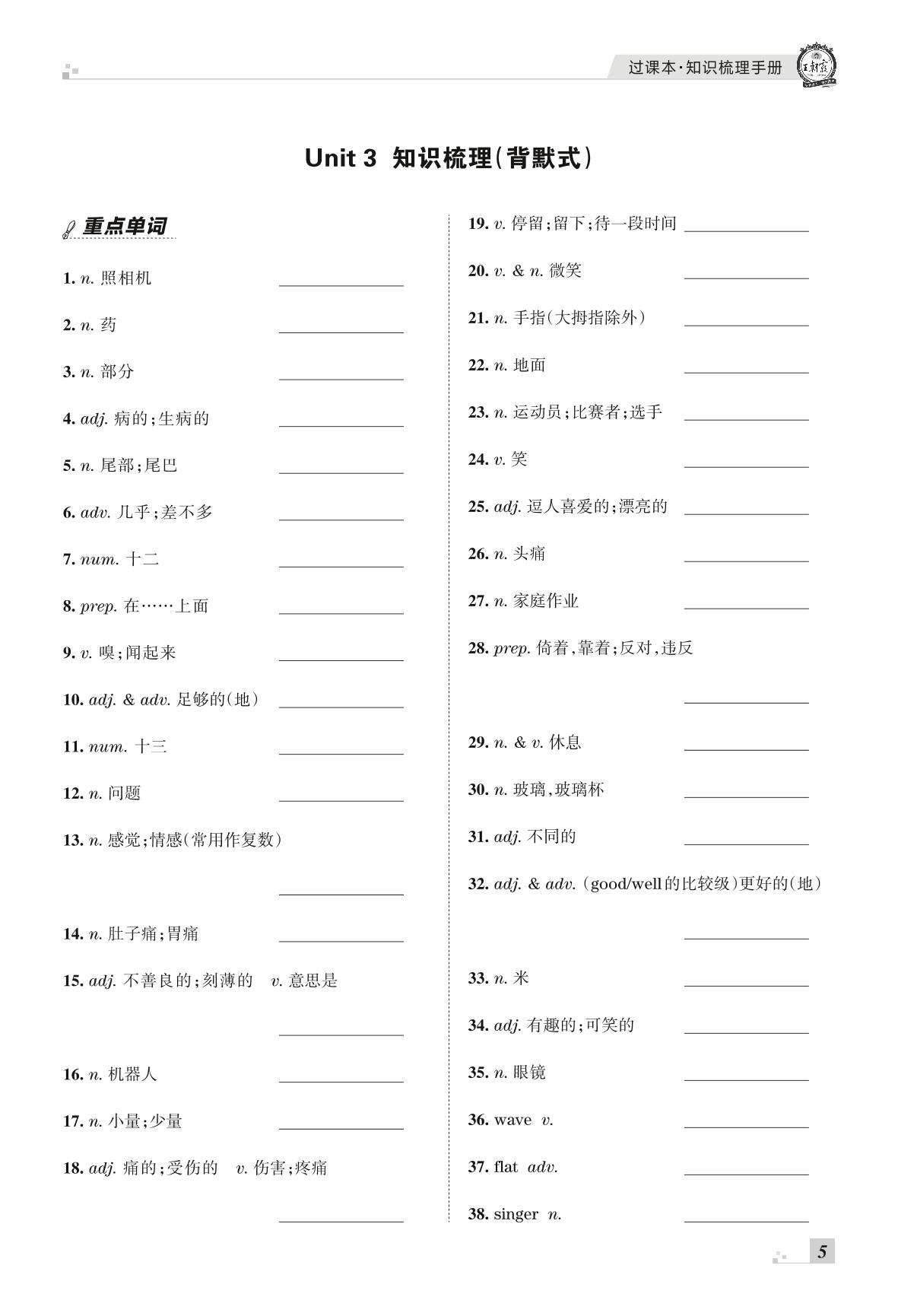 王朝霞期末过课本——Unit 3 知识梳理(背默式)七年级上册英语(冀教版)【3】
