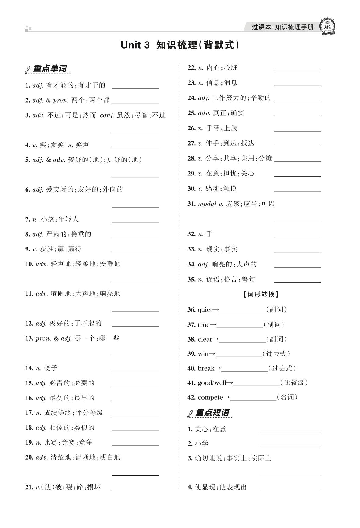 王朝霞期末过课本——Unit 3 知识梳理(背默式)八年级上册英语(人教版)【3】