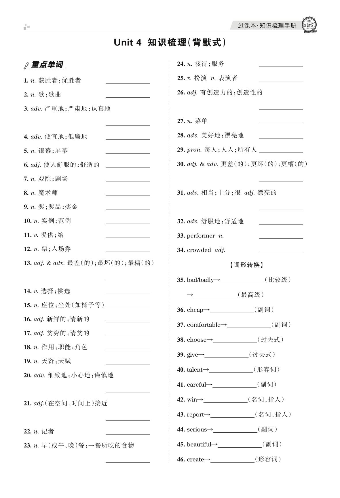 王朝霞期末过课本——Unit 4 知识梳理(背默式)八年级上册英语(人教版)【4】