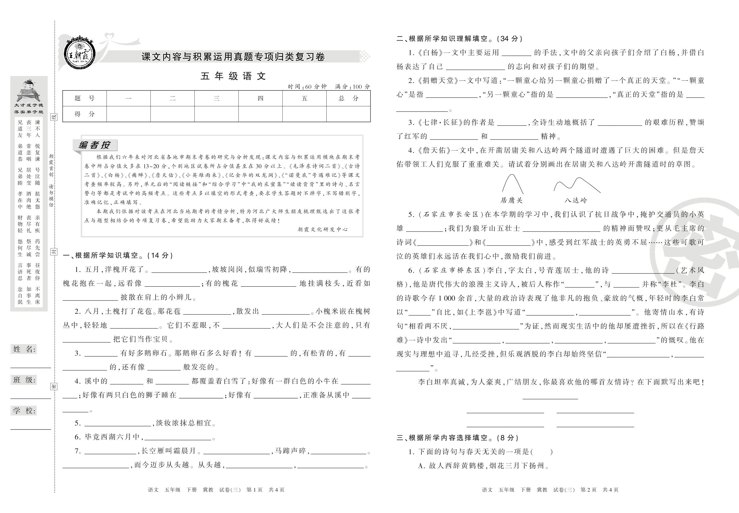 王朝霞期末专项卷五年级下册语文(冀教版)_R210801204221【3】