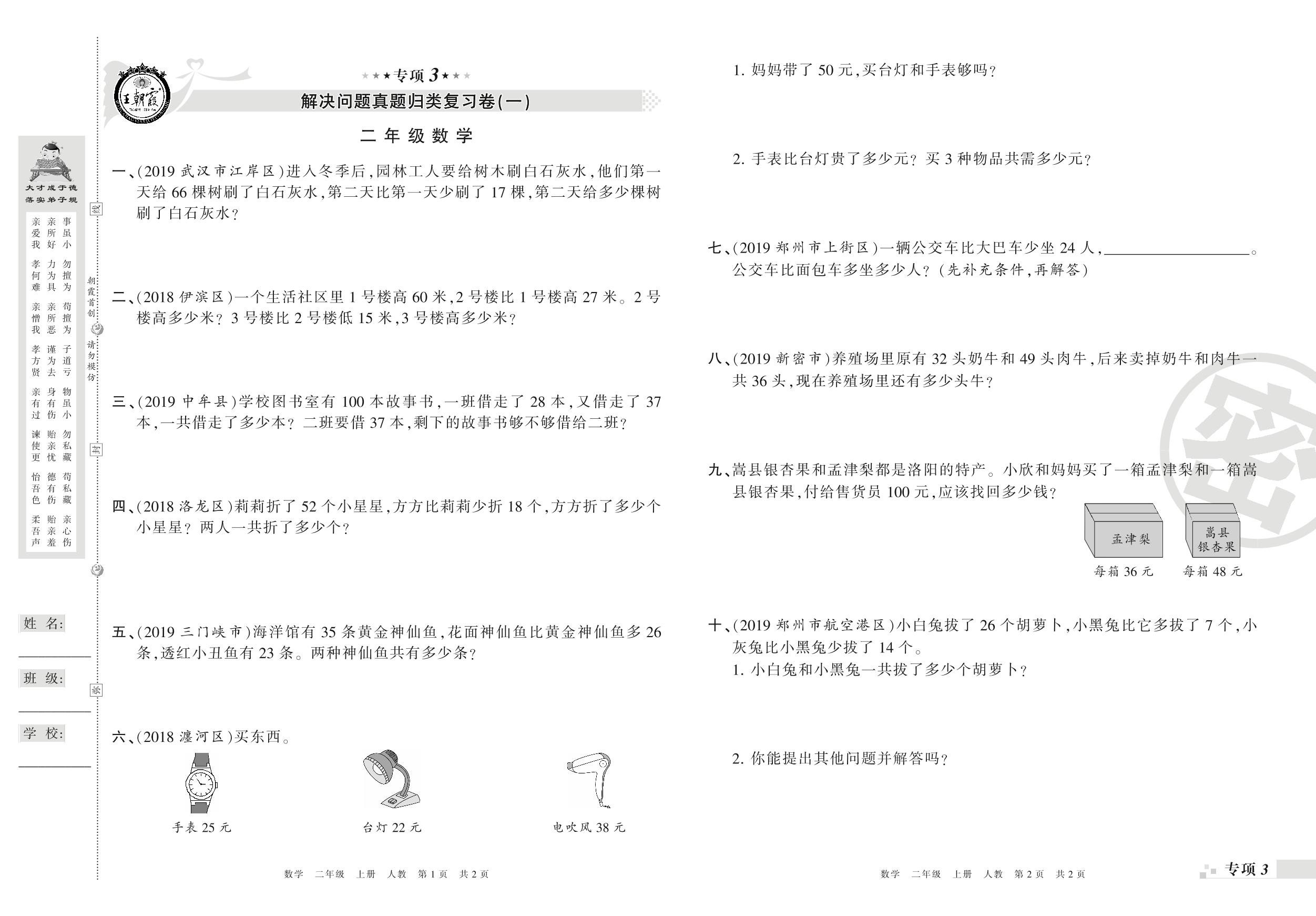 王朝霞期末专项卷——解决问题真题归类复习二年级上册数学(人教版)【0】