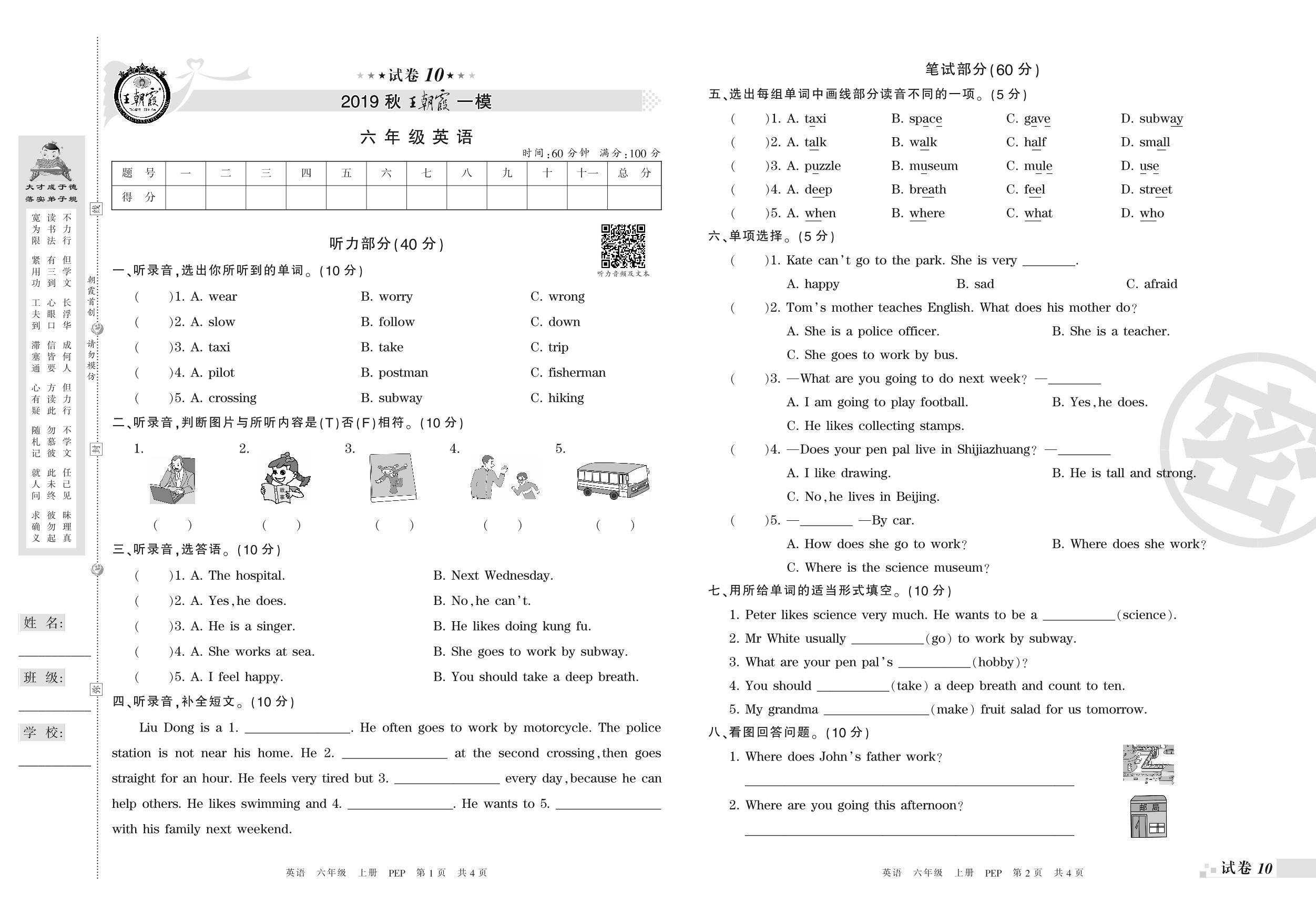 王朝霞期末模拟卷六年级上册英语(PEP版)_R210807143224【10】
