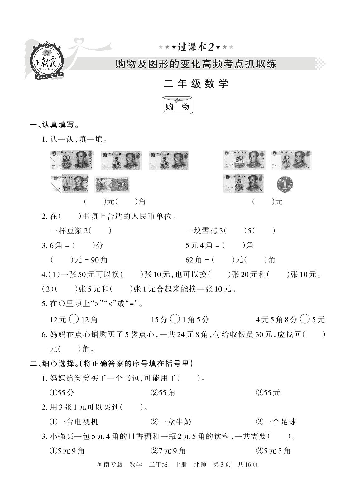 王朝霞期末过课本——购物及图形的变化高频考点抓取练二年级上册数学(北师版)_R211129091449127【2】