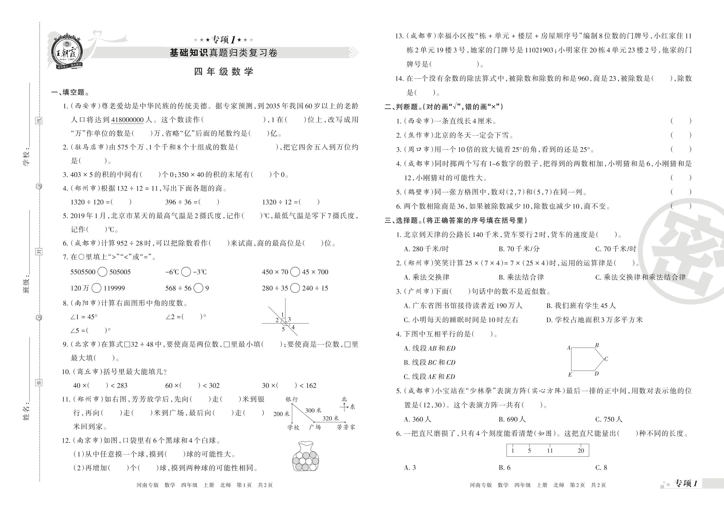 王朝霞期末专项卷——基础知识真题归类复习卷四年级上册数学(北师版)_R211129092244865【1】