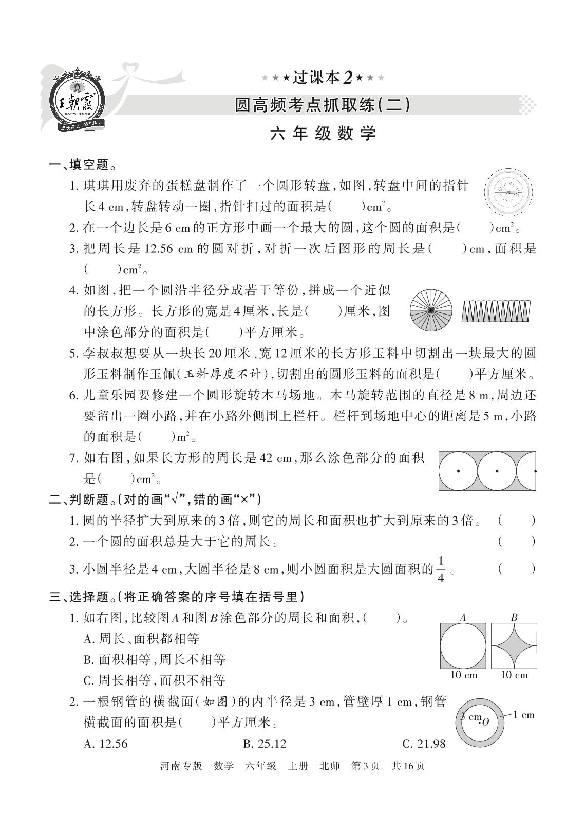 王朝霞期末过课本——圆高频考点抓取练(二)六年级上册数学(北师版)_R211129092615085【2】