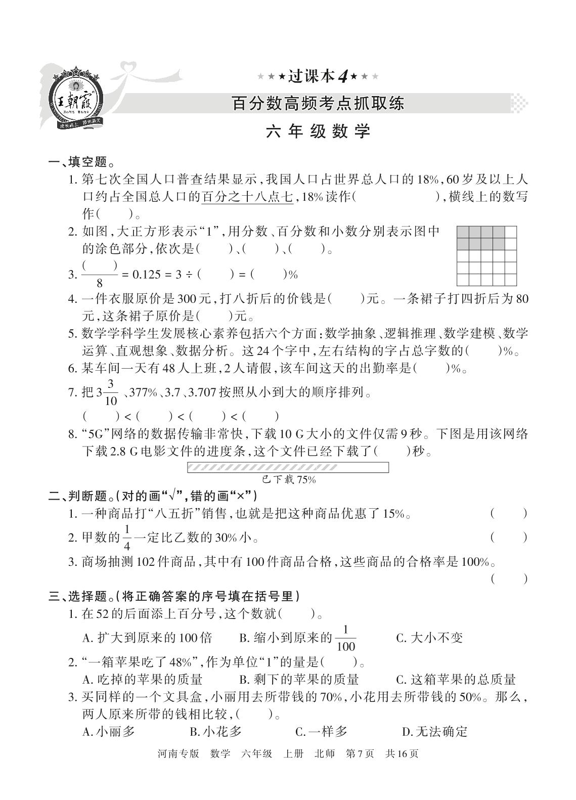 王朝霞期末过课本——百分数高频考点抓取练六年级上册数学(北师版)_R211129092615380【4】